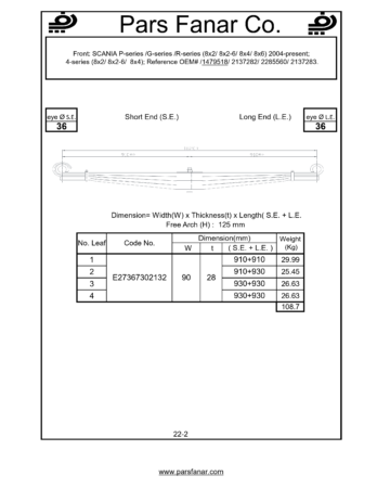 دست فنر پارابولیک چرخ جلو SCANIA P-Series /G-Series /R-Series