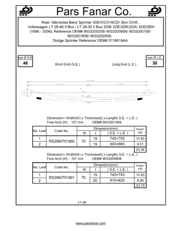 دست فنر پارابولیک چرخ عقب Mercedes Benz