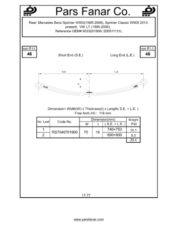 دست فنر پارابولیک چرخ عقب Mercedes Benz Sprinter