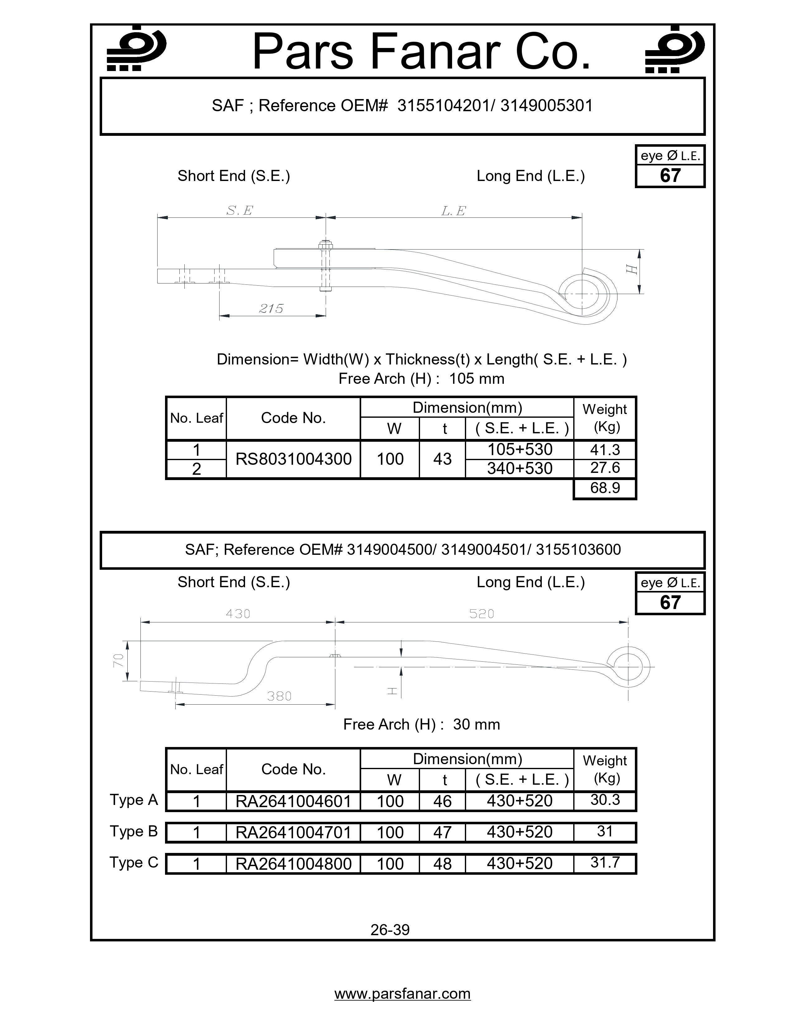 | Free arc (H) flat spring | 105 |