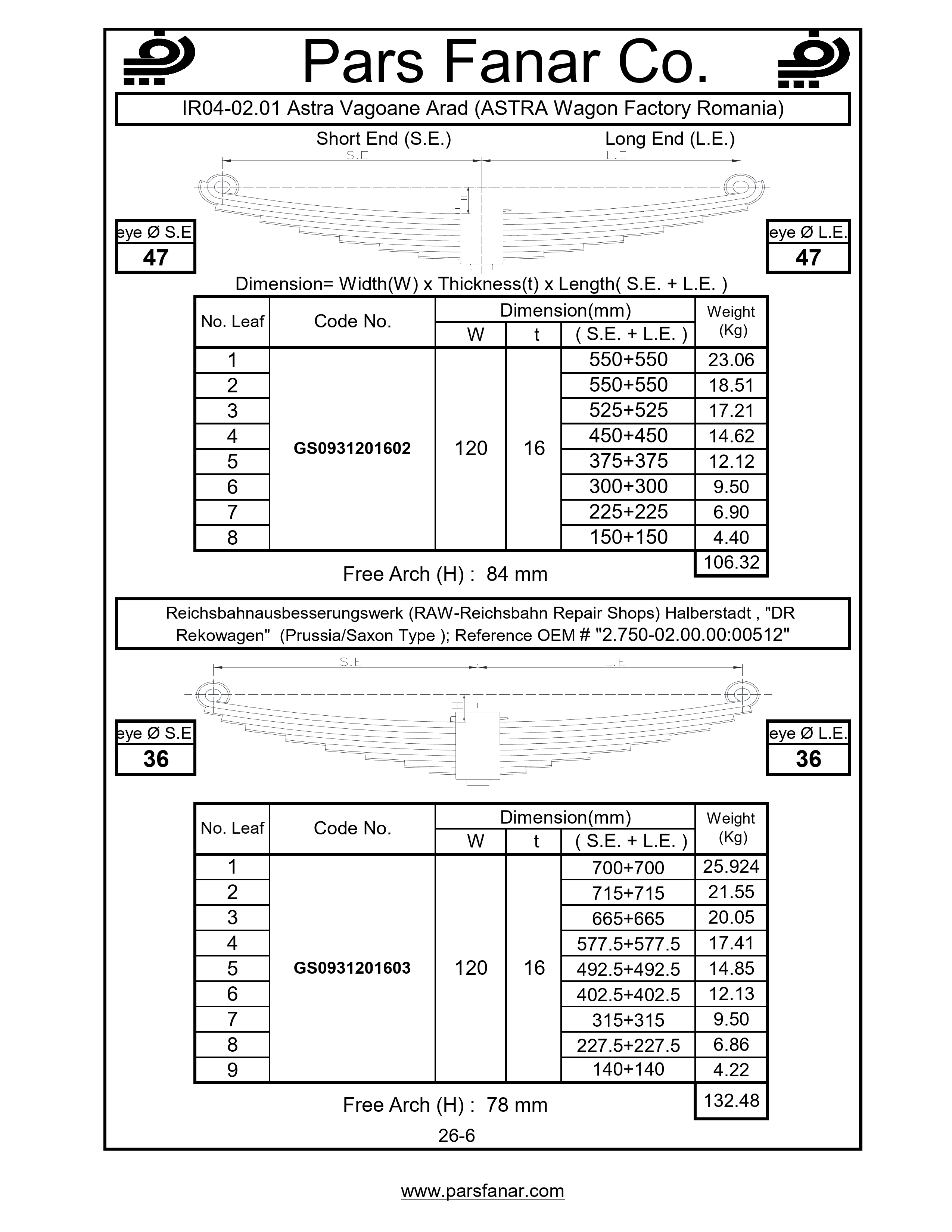 | Free arc (H) flat spring | 78 |