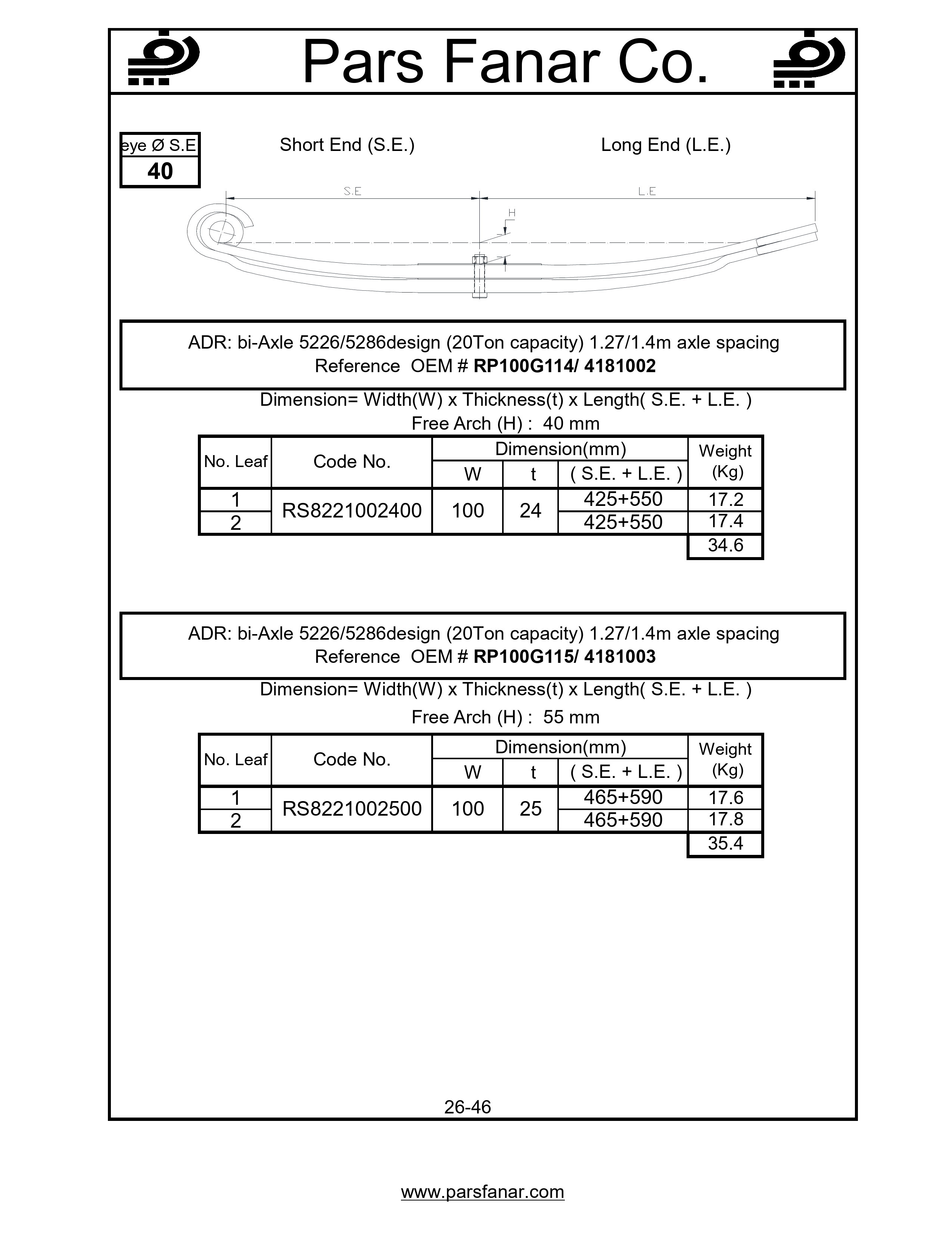 ADR: bi-Axle 5226/5286design (20Ton capacity) 1.27/1.4m axle spacing