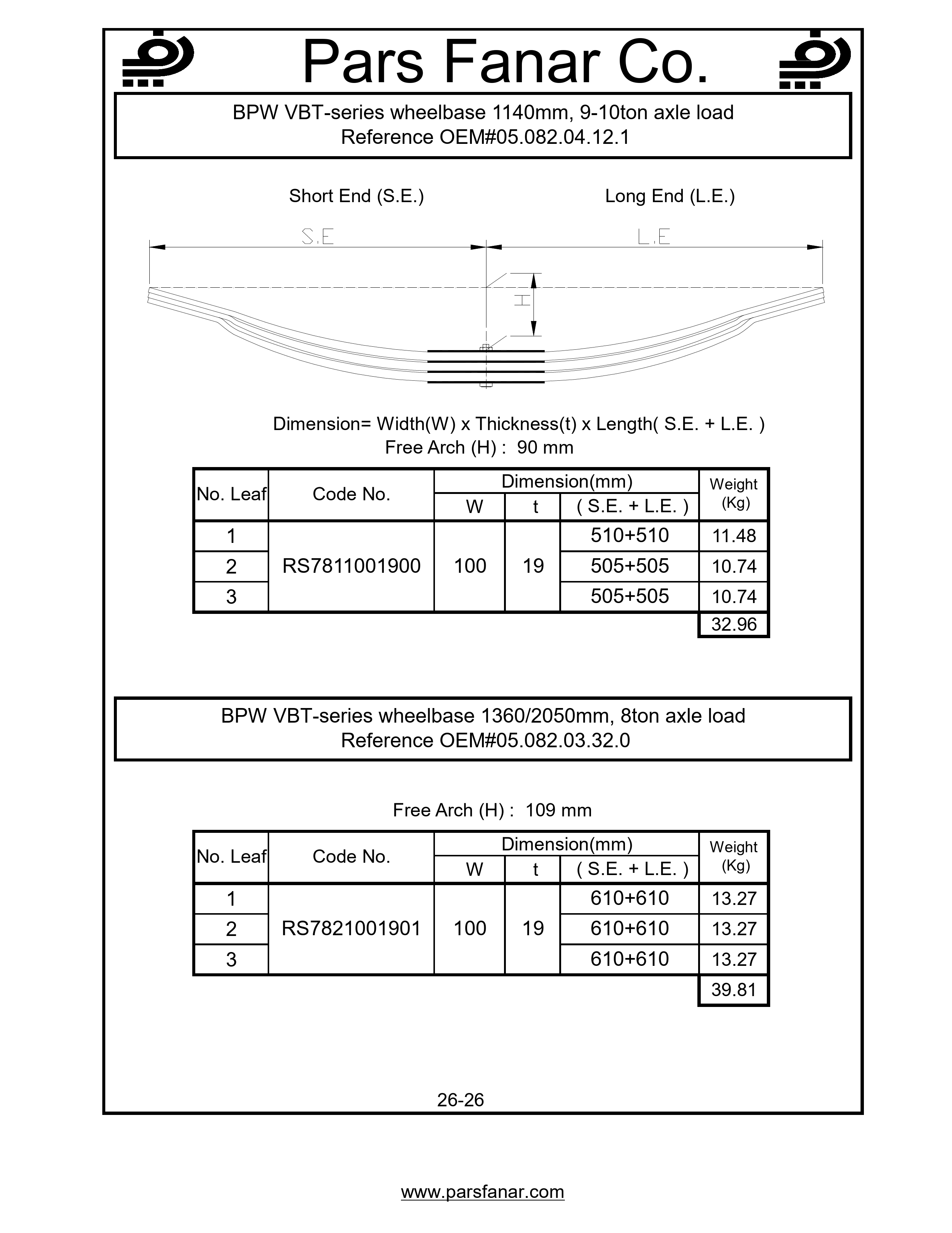 | Name of the vehicle/cabin/trailer | 8ton axle load, 9-10ton axle load, BPW VBT-Series Wheelbase 1140mm, BPW VBT-series wheelbase 1360/2050mm |