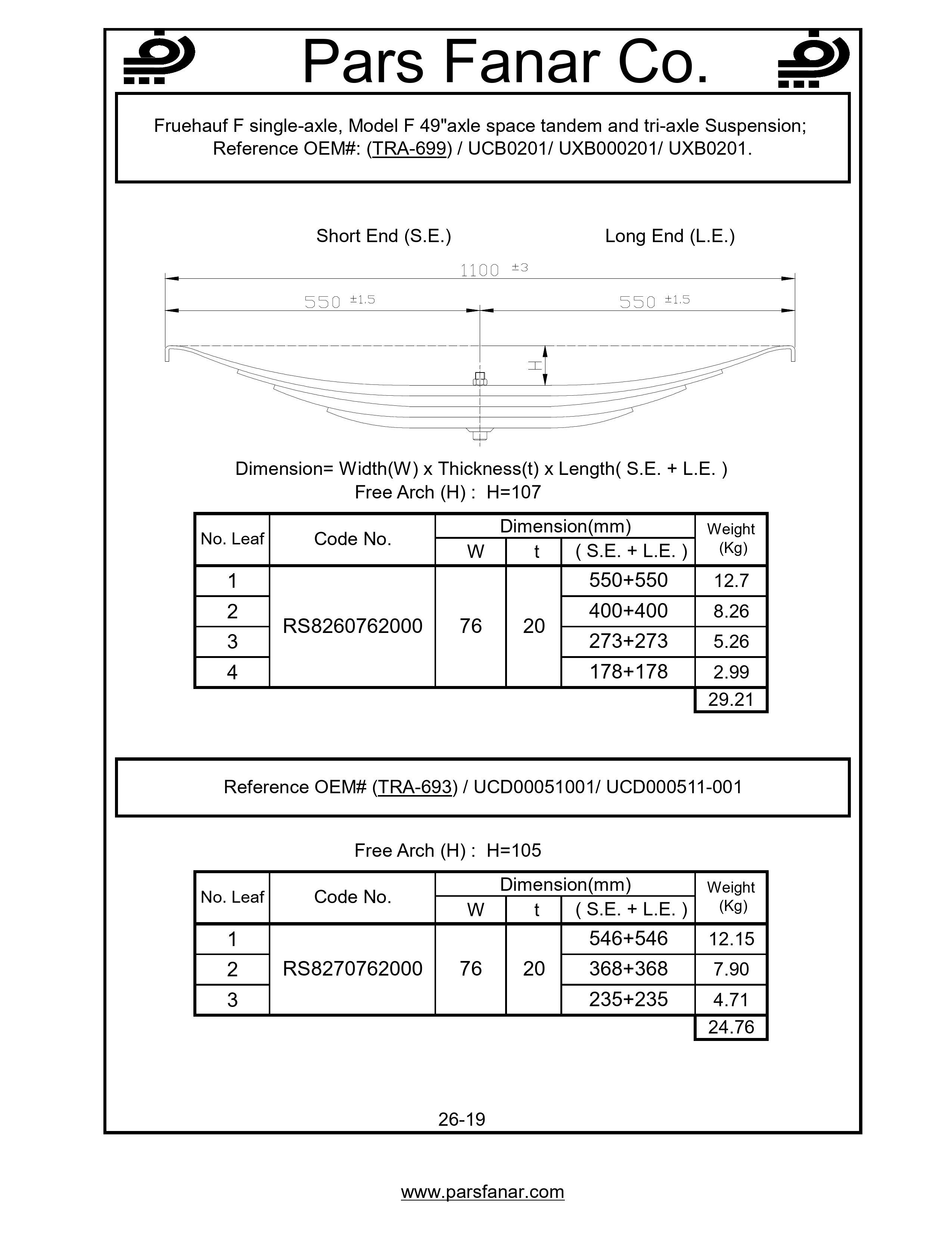 | Name of the vehicle/cabin/trailer | Fruehauf F single-axle, Model F 49"axle space tandem and tri-axle Suspension |