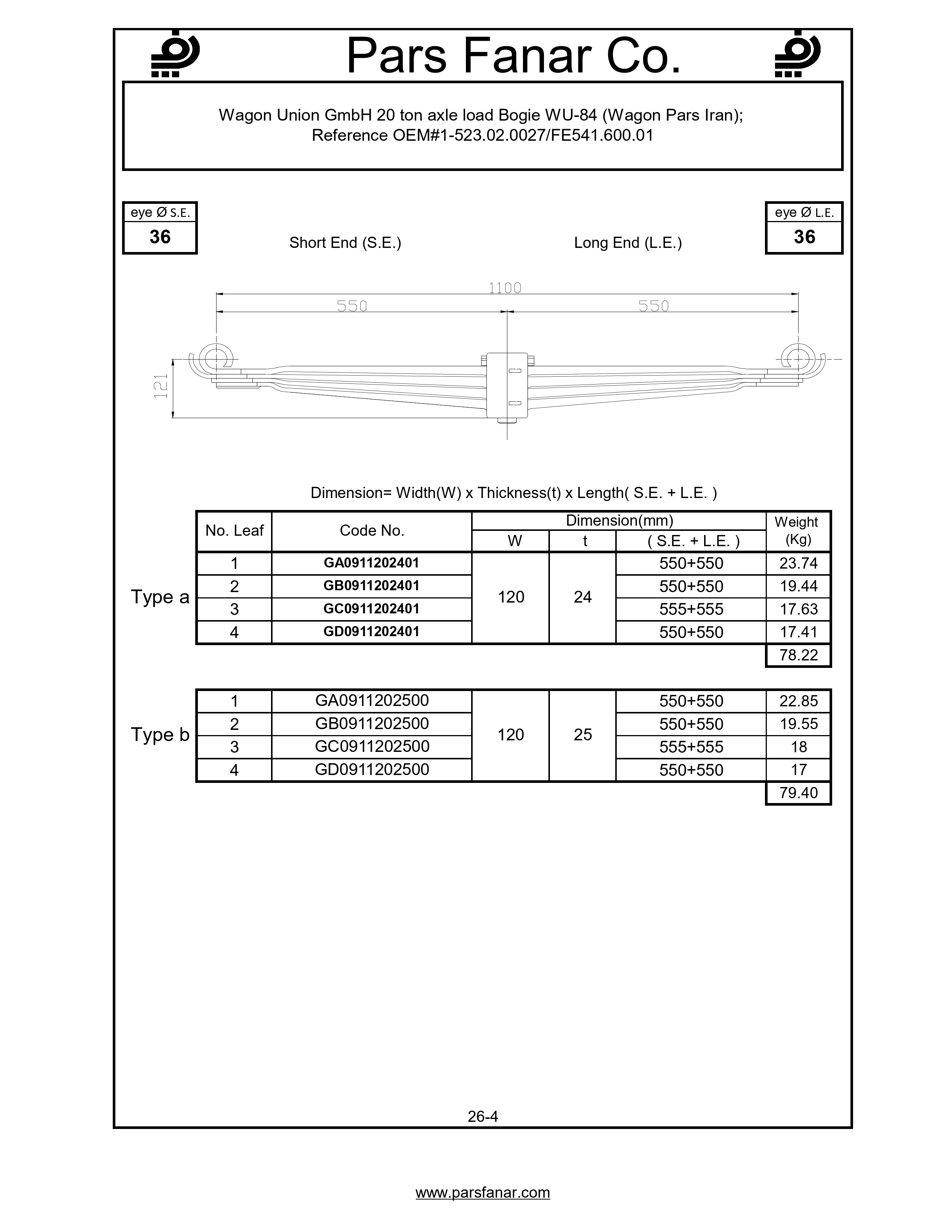 | Name of the vehicle/cabin/trailer | Waggon Union GmbH 20 ton axle load Bogie WU-84 (Wagon Pars Iran) |