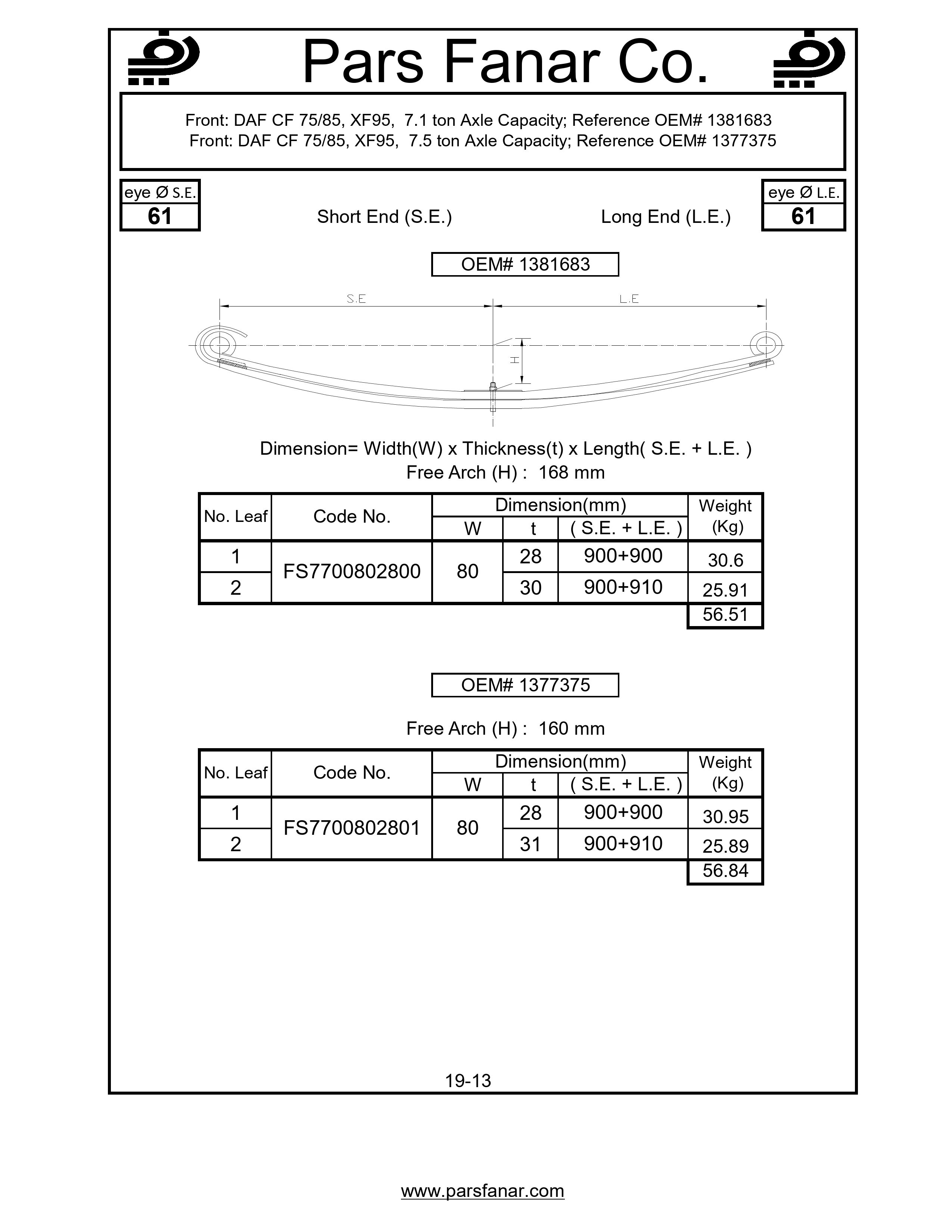 | Free arc (H) flat spring | 168 |