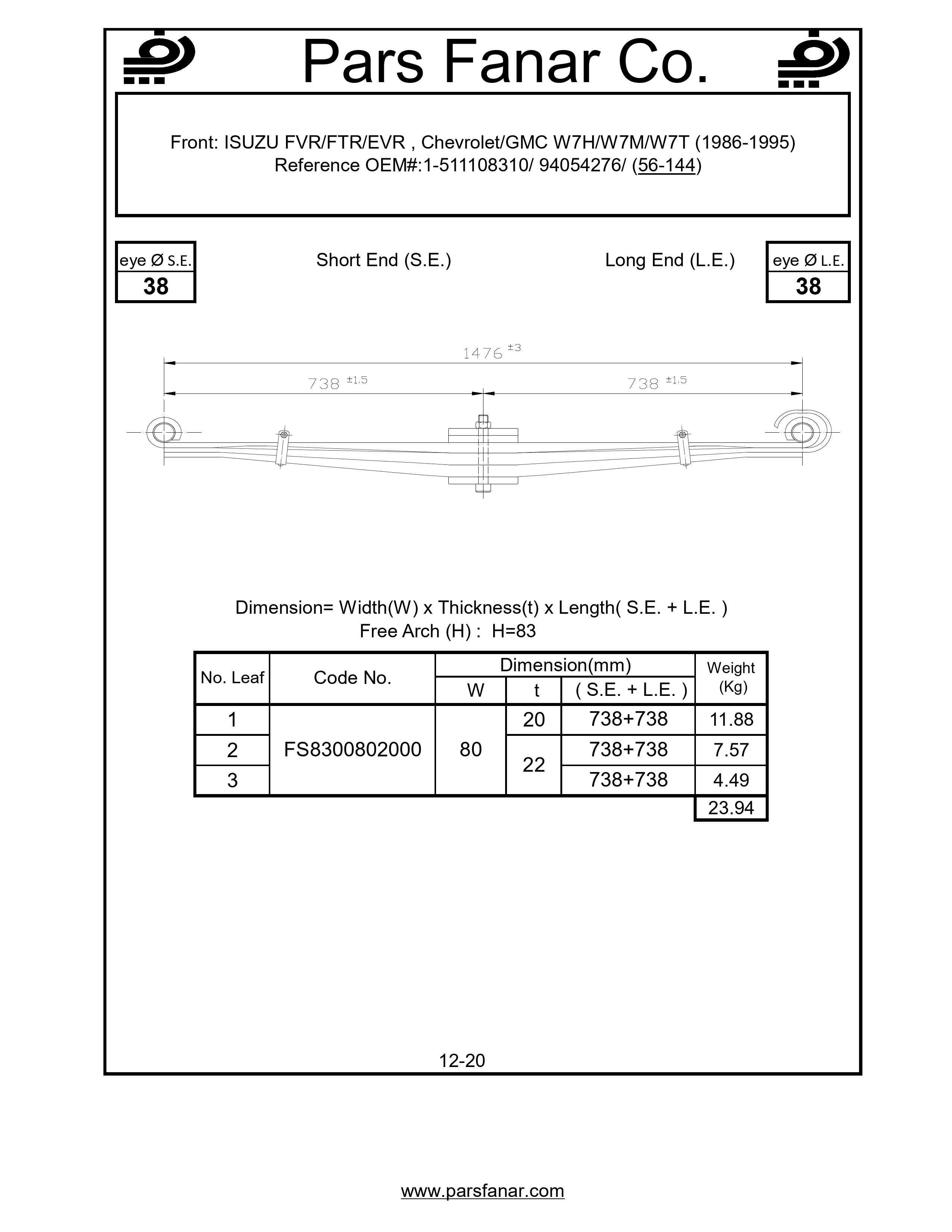 Reference OEM#:1-511108310/ 94054276/ (56-144)