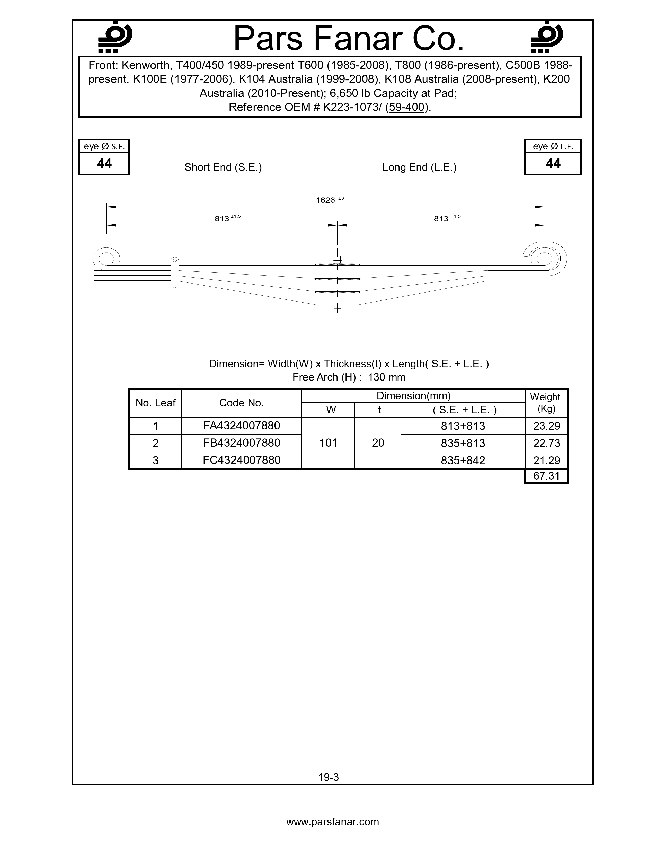 | Name of the vehicle/cabin/trailer | 650 lb Capacity at Pad, C500B 1988-present, K100E (1977-2006), K104 Australia (1999-2008), K108 Australia (2008-present), K200 Australia (2010-Present); 6, Kenworth, T400/450 1989-present T600 (1985-2008), T800 (1986-present) |