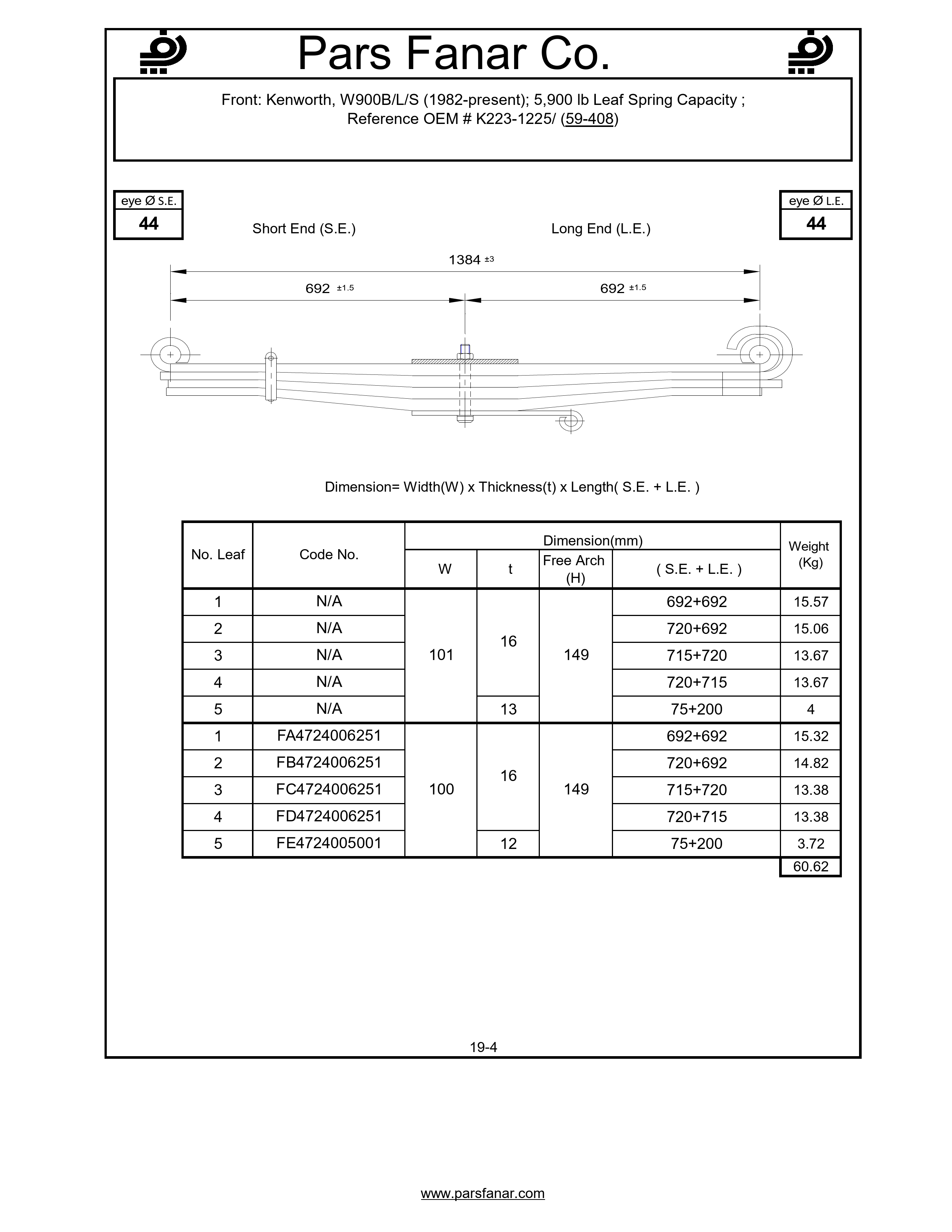| Name of the vehicle/cabin/trailer | 900 lb Leaf Spring Capacity, Kenworth, W900B/L/S (1982-present); 5 |