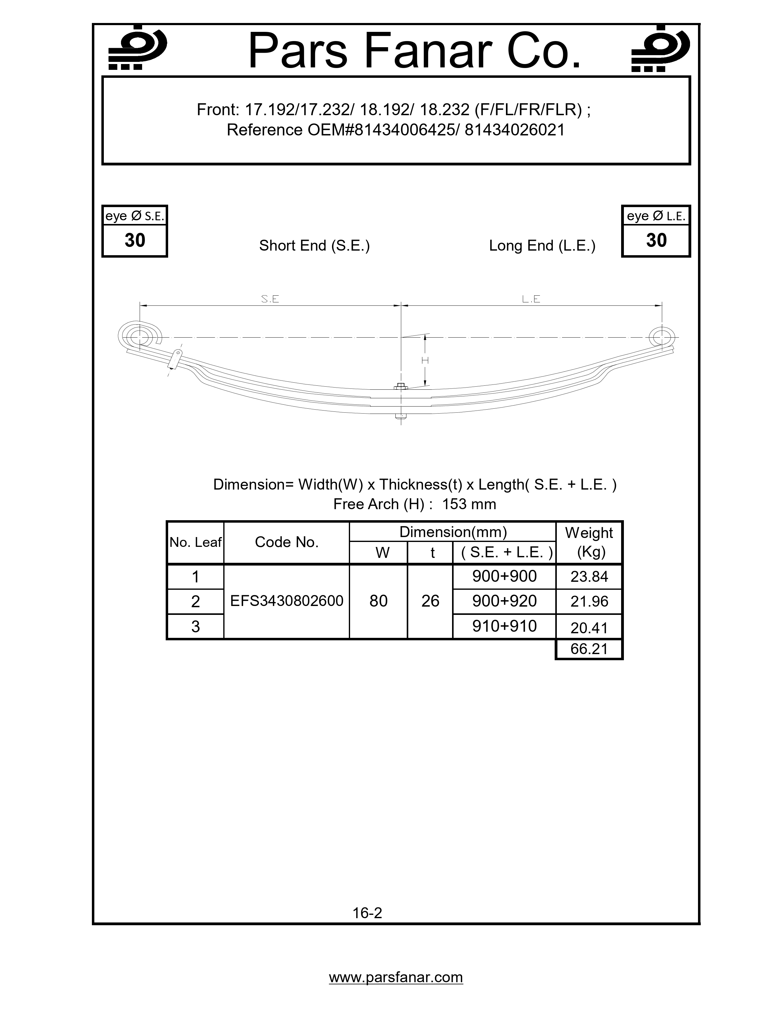 Front: MAN 17.192/17.232/ 18.192/ 18.232 (F/FL/FR/FLR)