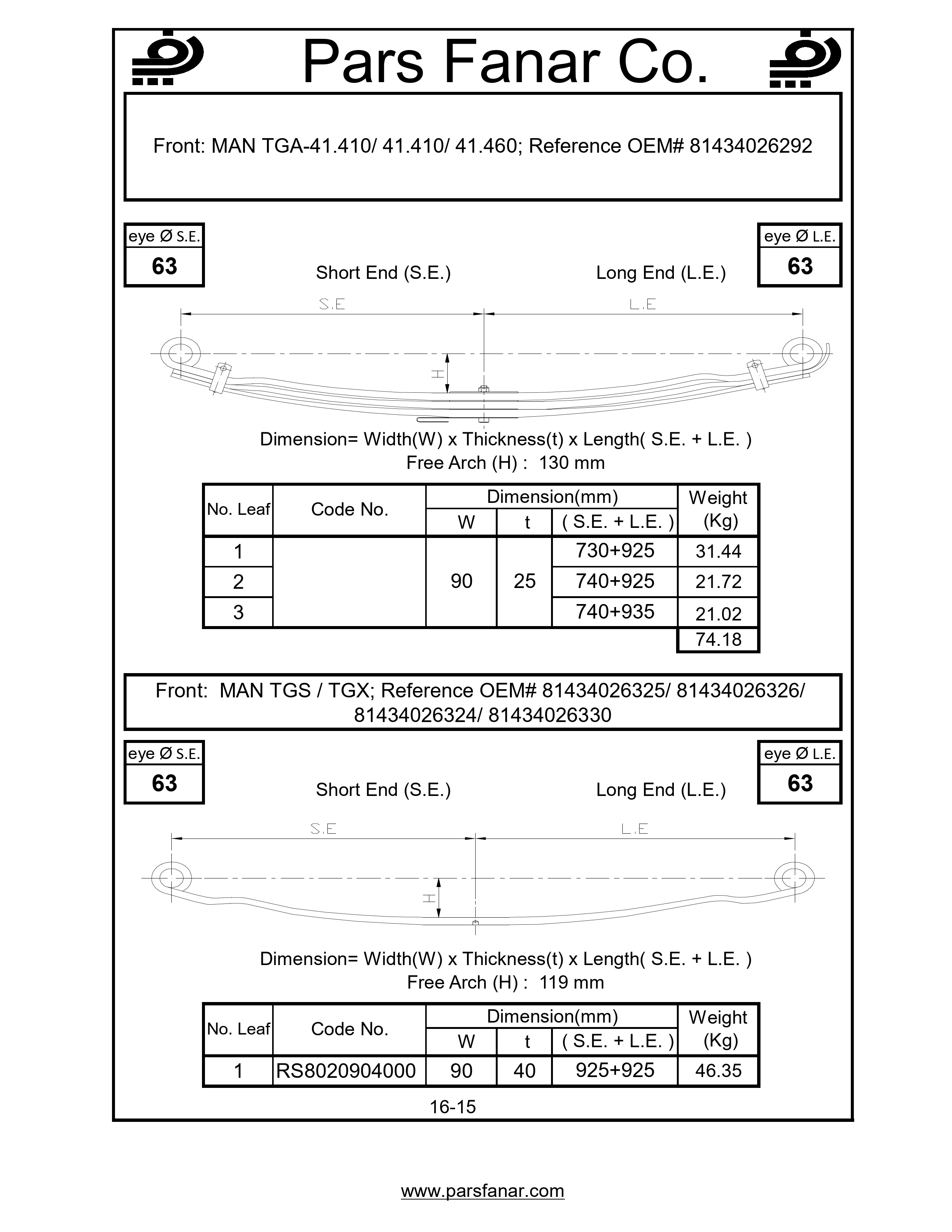 دست فنر پارابولیک چرخ جلو MAN TGA