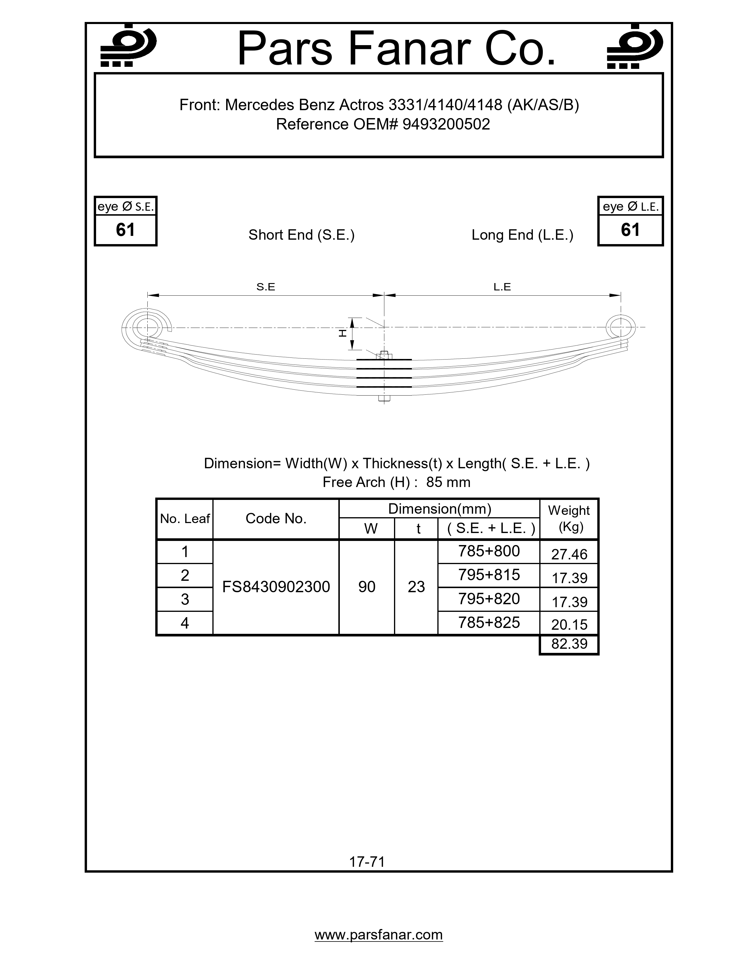 | Free arc (H) flat spring | 85 |