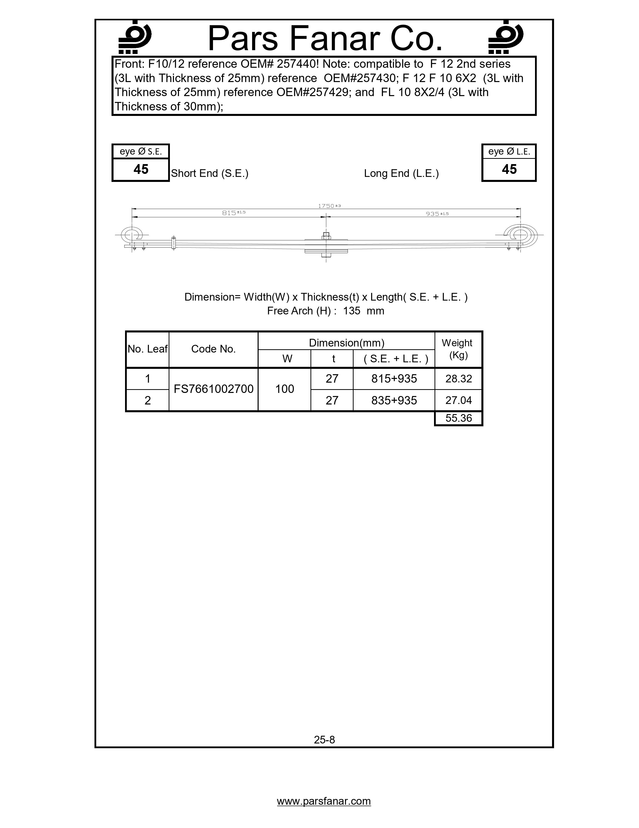 Reference OEM#257430; F12 F 10 6X2 (3L with Thickness of 25mm)