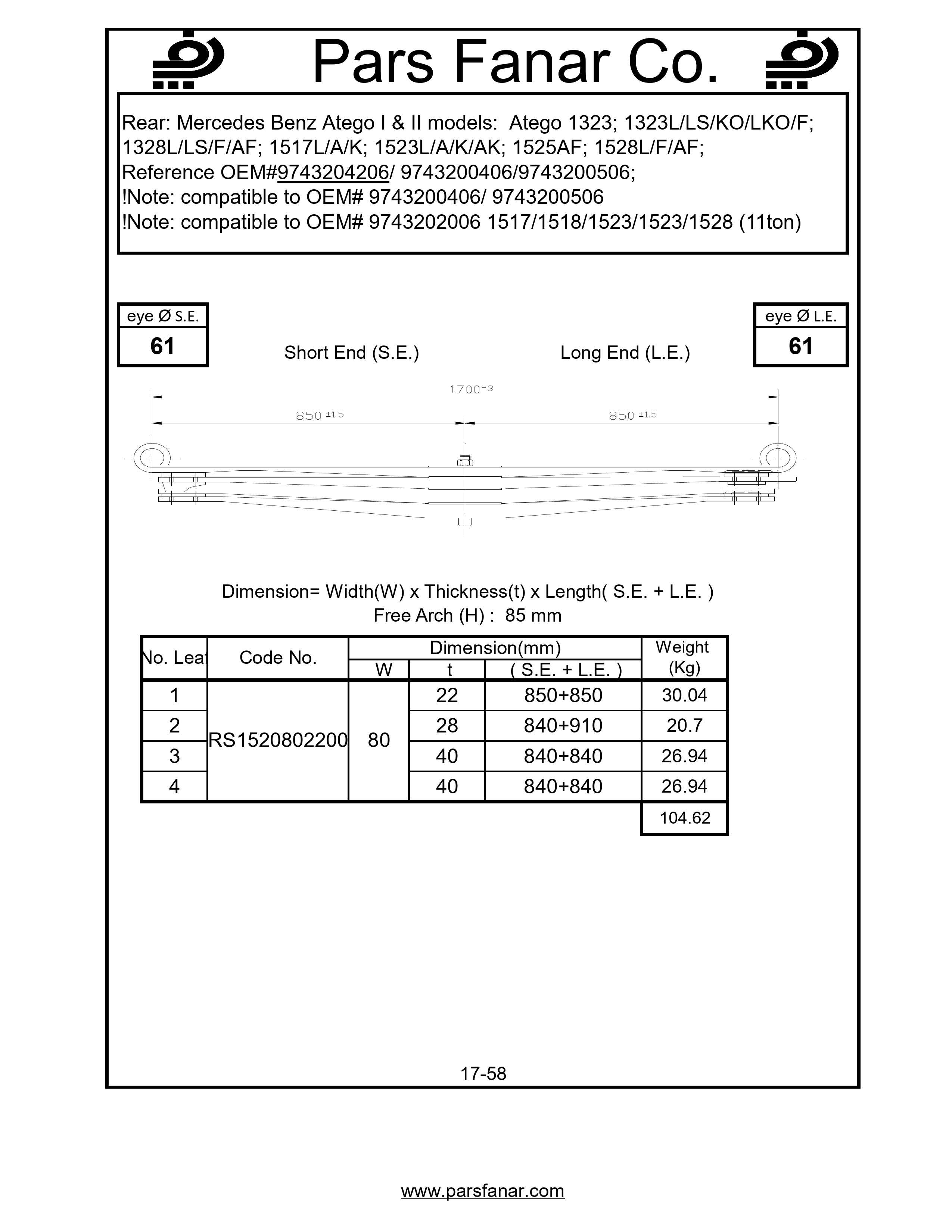 | Free arc (H) flat spring | 85 |