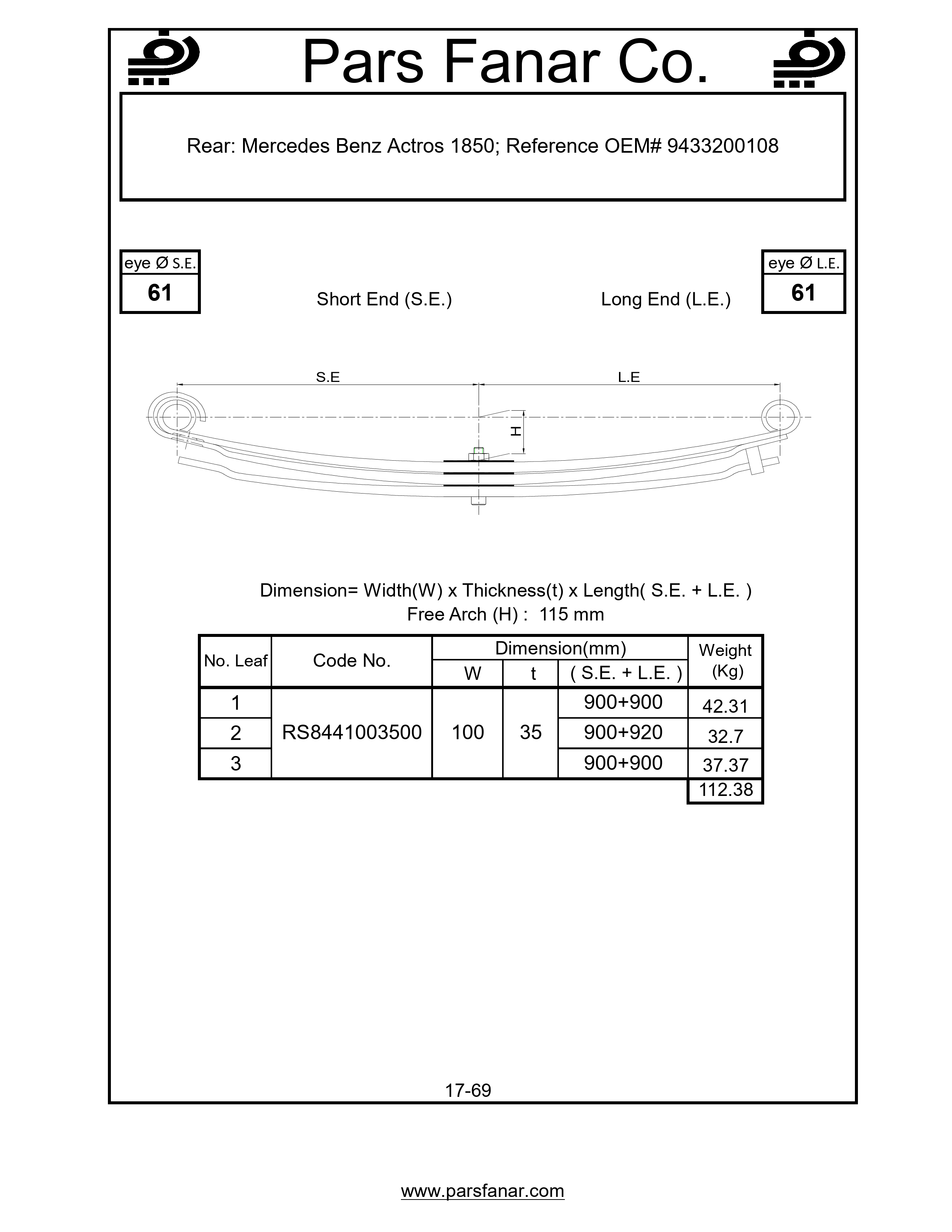 دست فنر پارابولیک چرخ عقب Mercedes Benz Actros 1850