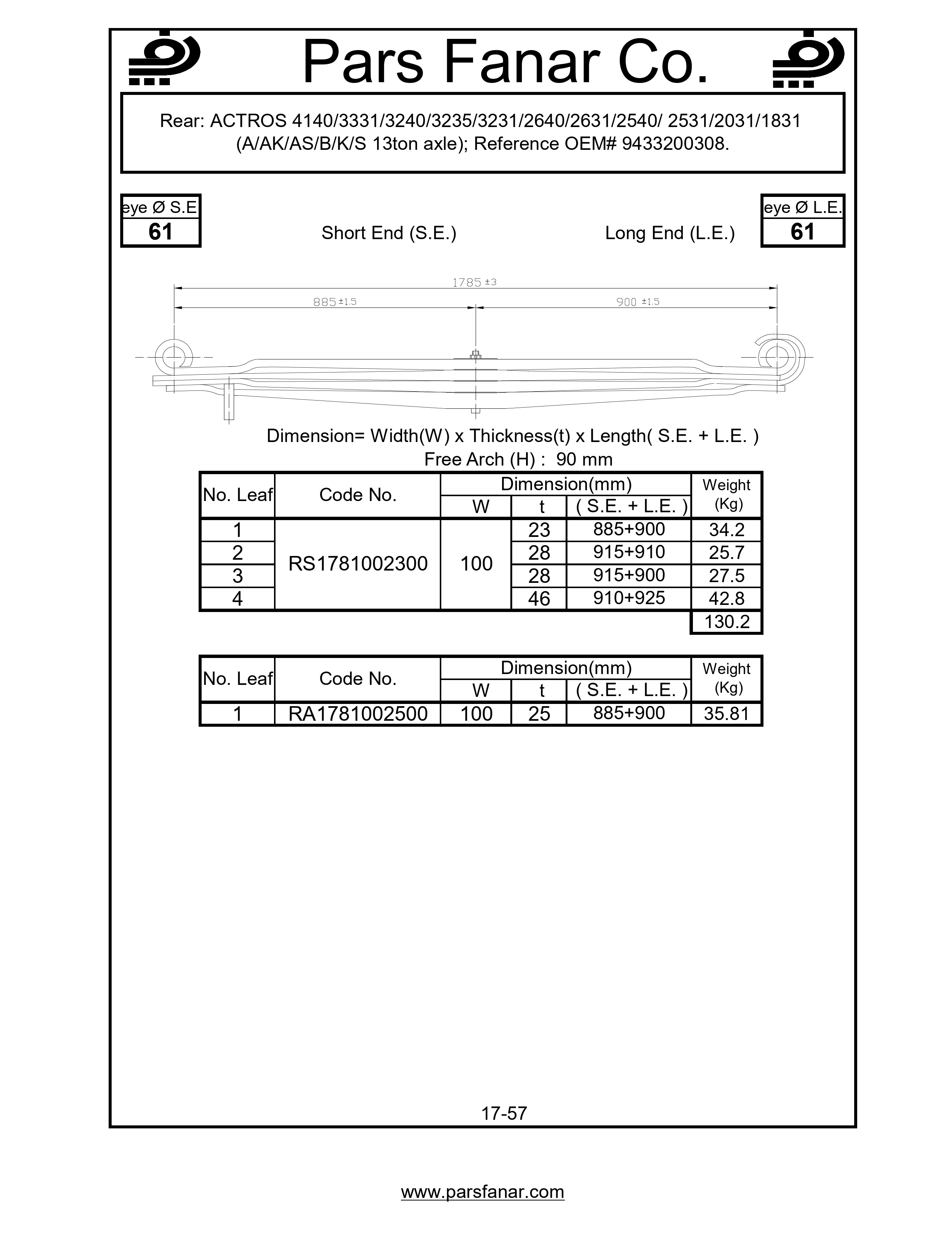 | Free arc (H) flat spring | 90 |