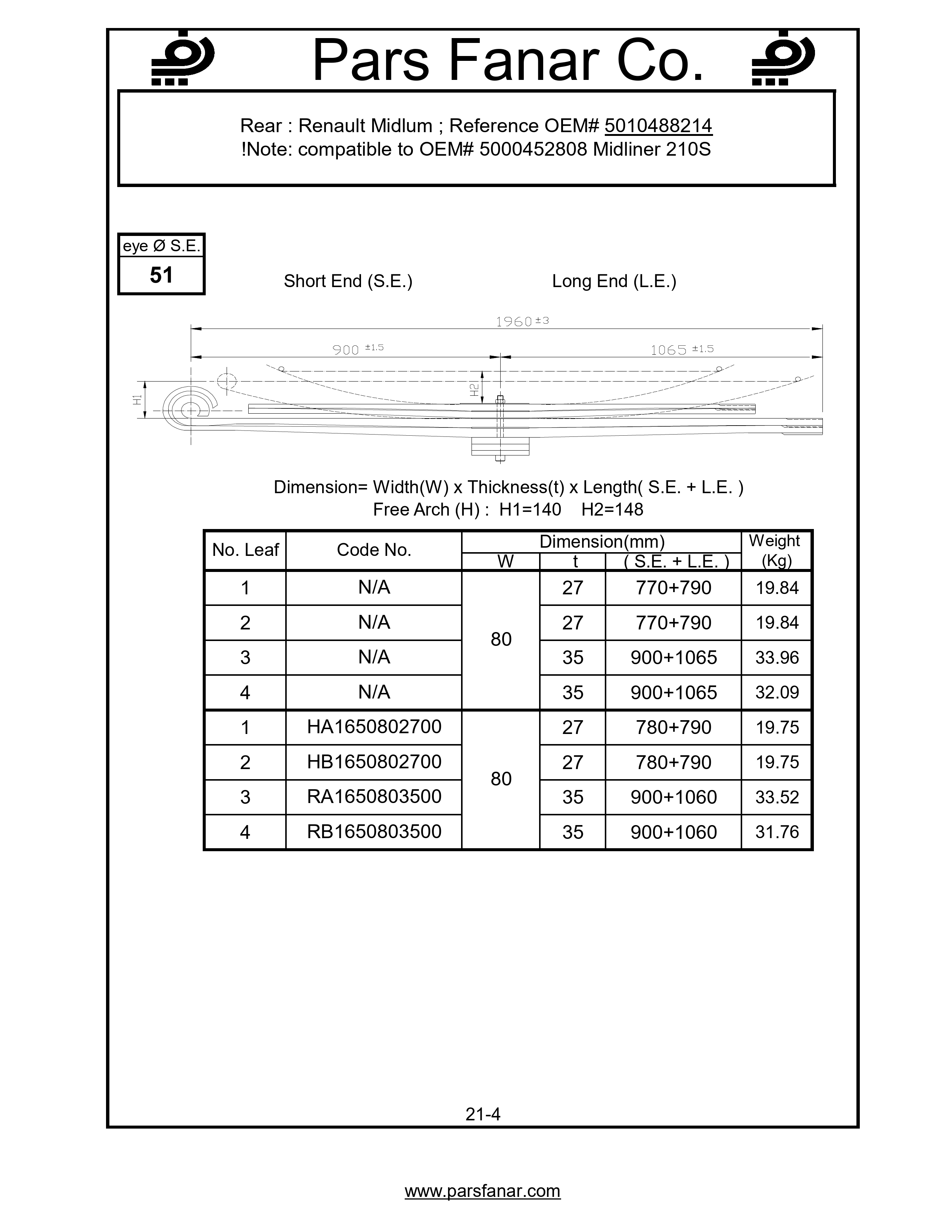 دست فنر پارابولیک چرخ عقب Renault Midlum