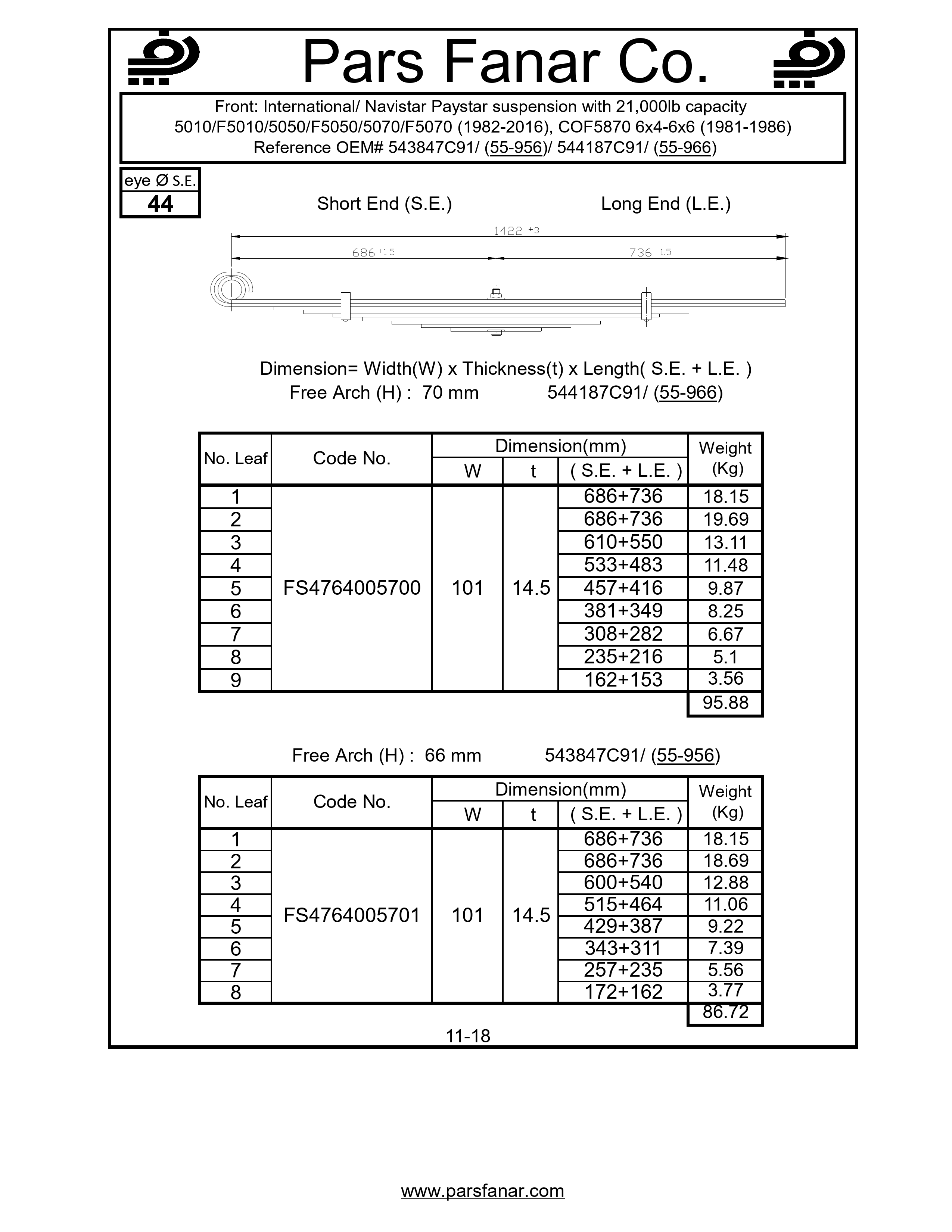 | Name of the vehicle/cabin/trailer | 000lb capacity 5010/F5010/5050/F5050/5070/F5070 (1982-2016), COF5870 6×4-6×6 (1981-1986), International/Navistar Paystar suspension with 21 |