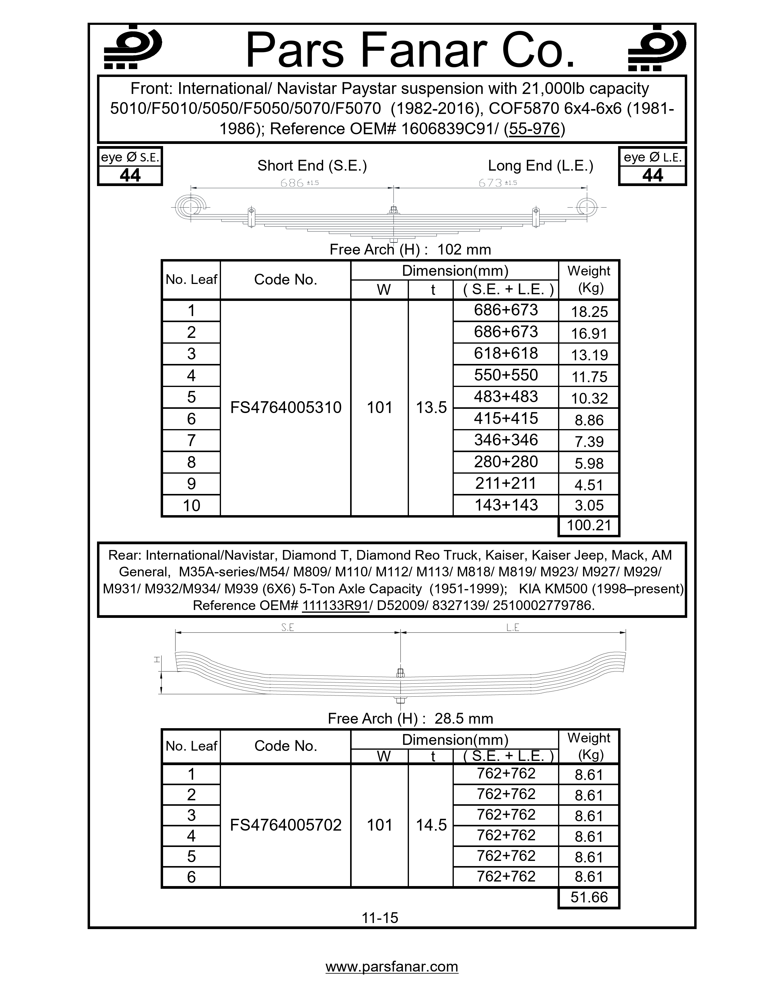 | Name of the vehicle/cabin/trailer | 000lb capacity 5010/F5010/5050/F5050/5070/F5070 (1982-2016), COF5870 6×4-6×6 (1981-1986), International/Navistar Paystar suspension with 21 |