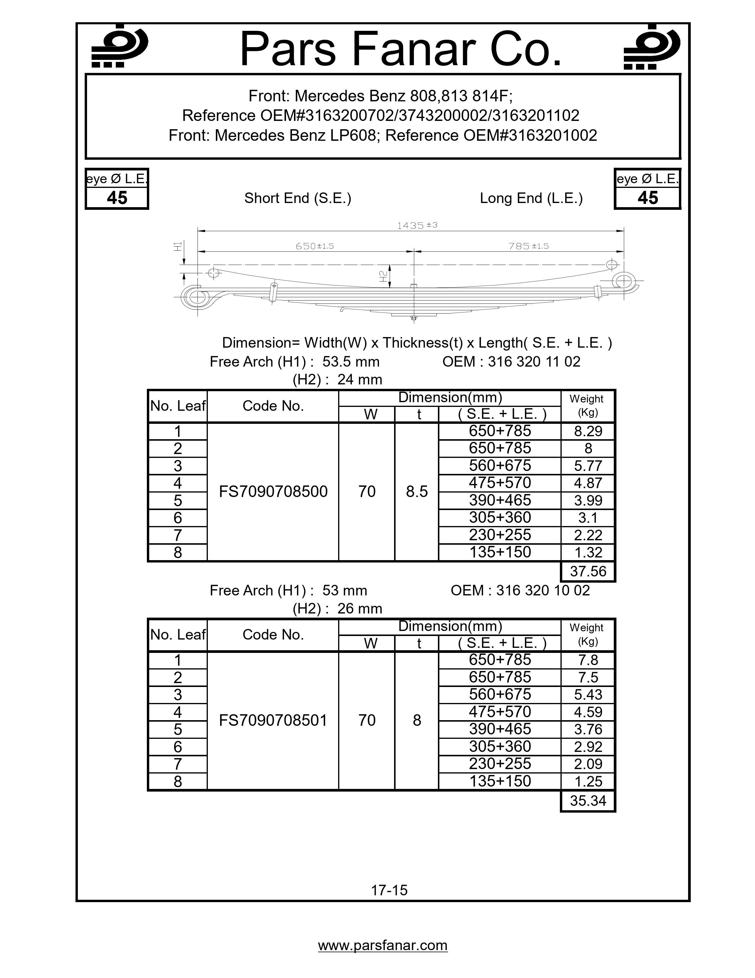 OEM Code : 3163200702, 3163201002, 3163201102, 3743200002