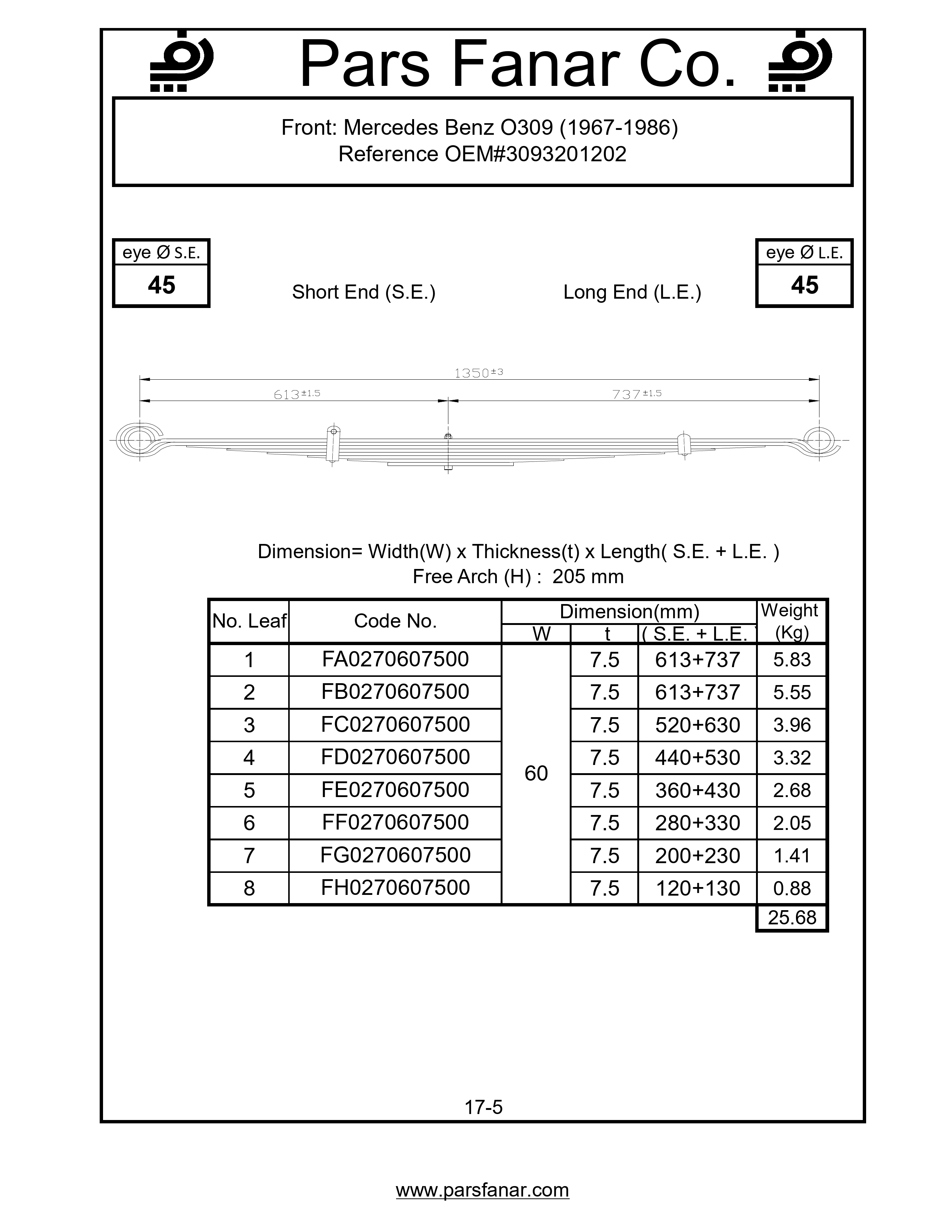 دست فنر چرخ جلو Mercedes Benz O309