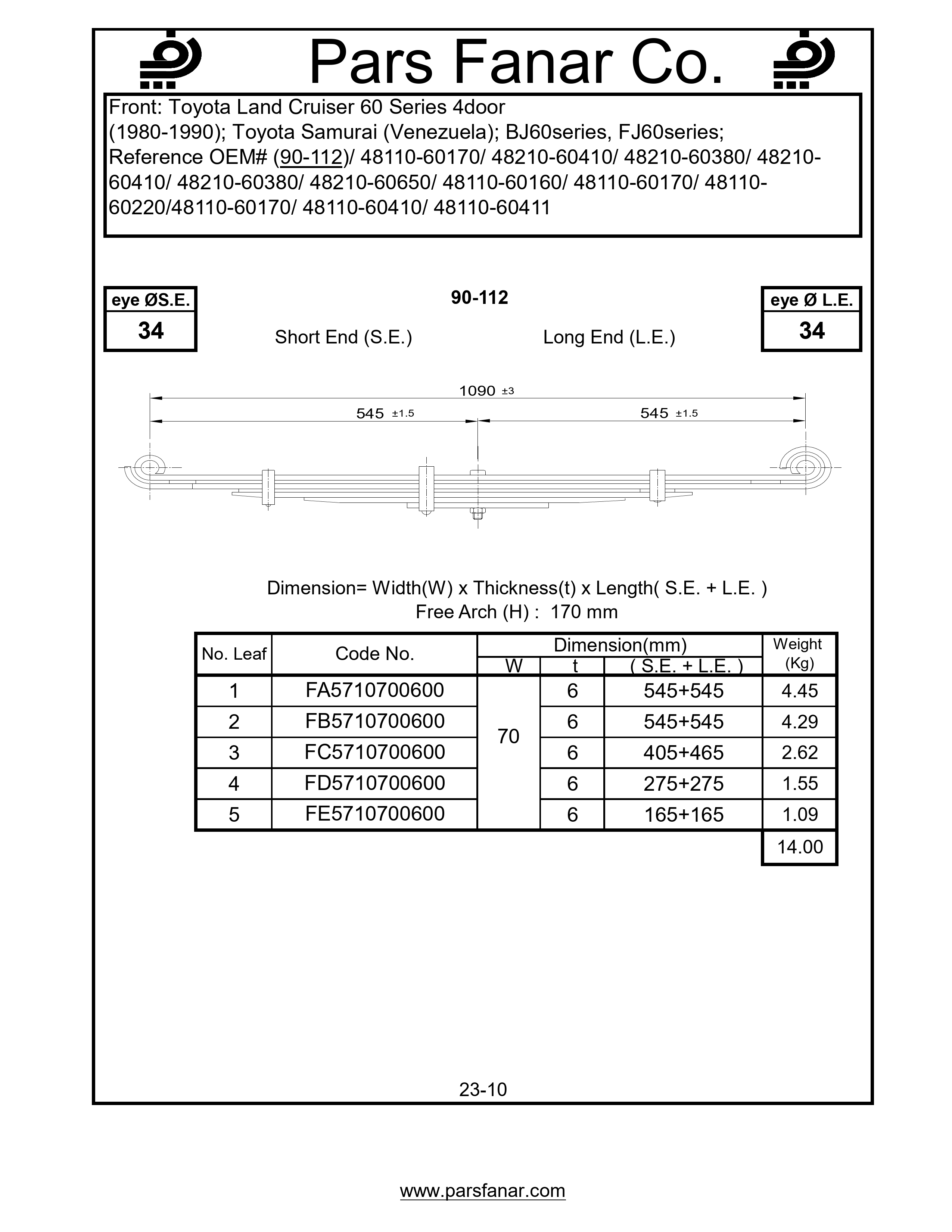 | OEM code | 48110-60160, 48110-60170, 48110-60220, 48110-60410, 48110-60411, 48210-60380, 48210-60410, 48210-60650 |