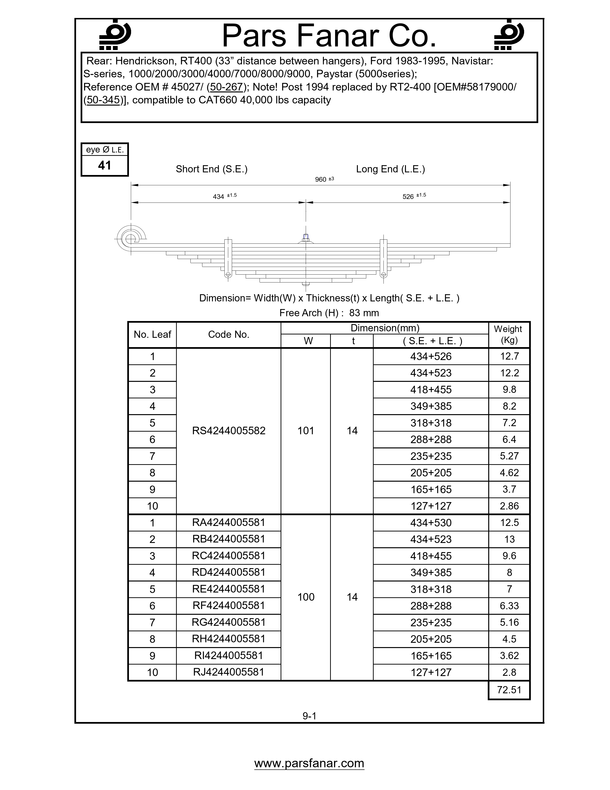 | Name of the vehicle/cabin/trailer | 1000/2000/3000/4000/7000/8000/9000, Ford 1983-1995, Harvester Paystar (5000series), Hendrickson, Navistar S-series, RT400 |