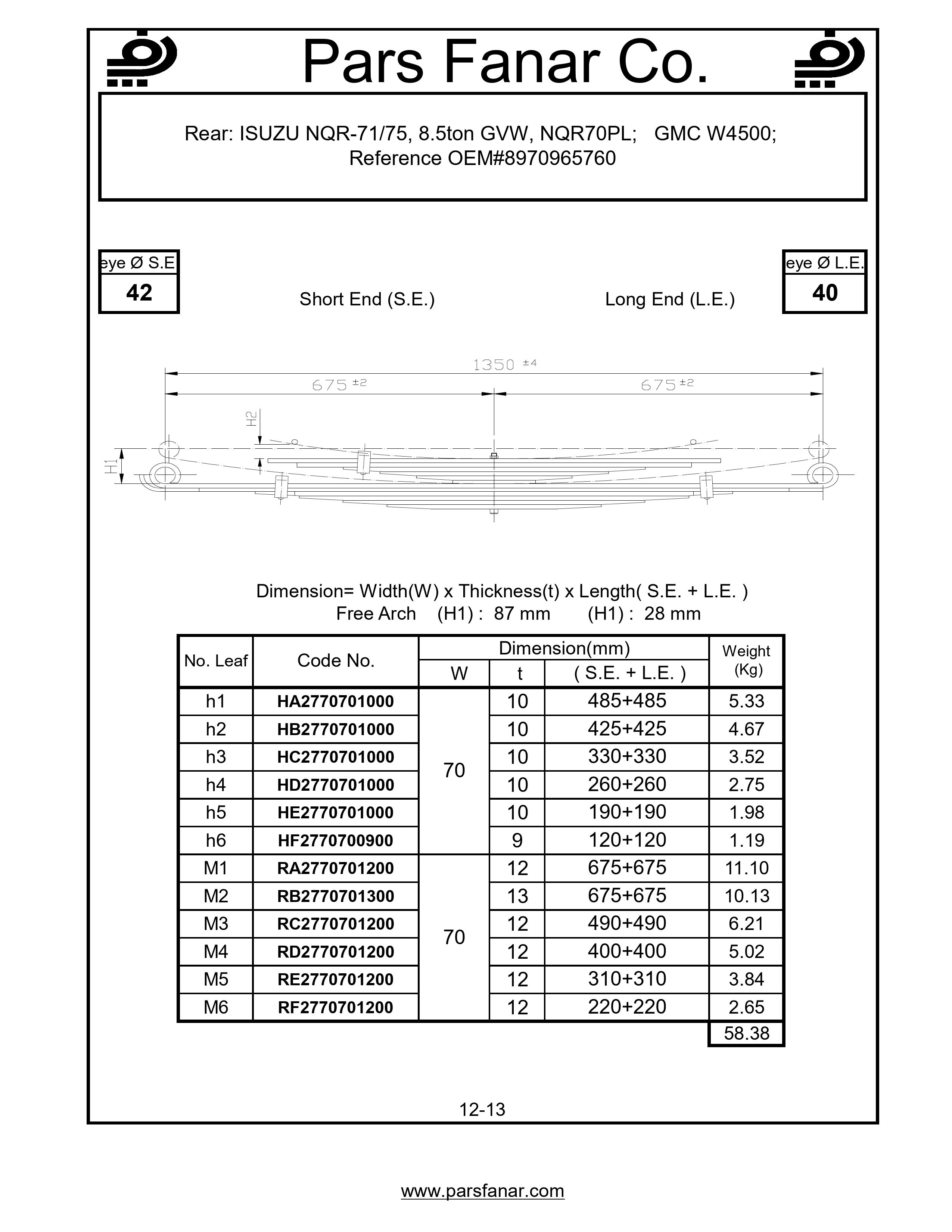 | Width (W) of flat spring | |