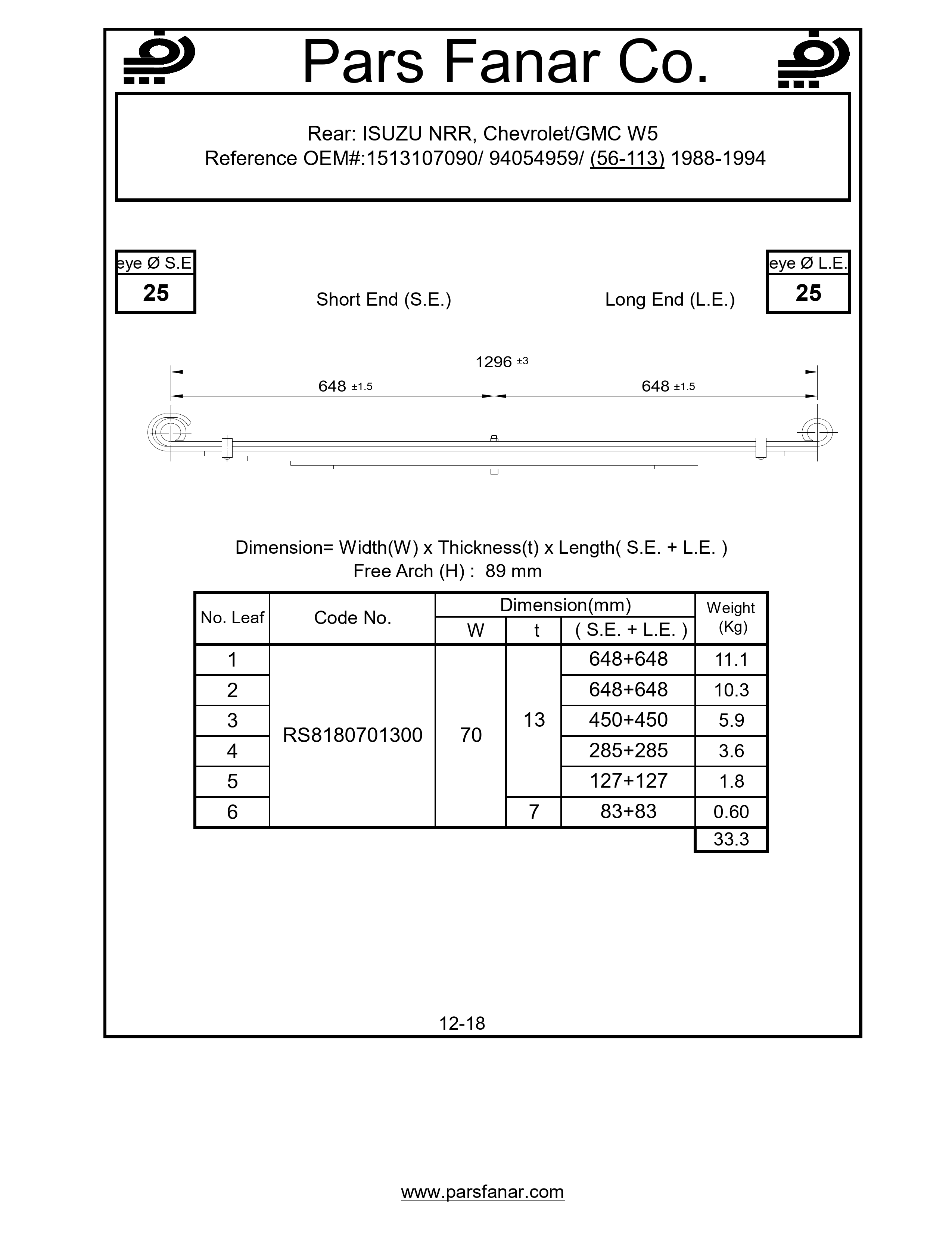دست فنر چرخ عقب ISUZU NRR, Chevrolet/GMC W5
