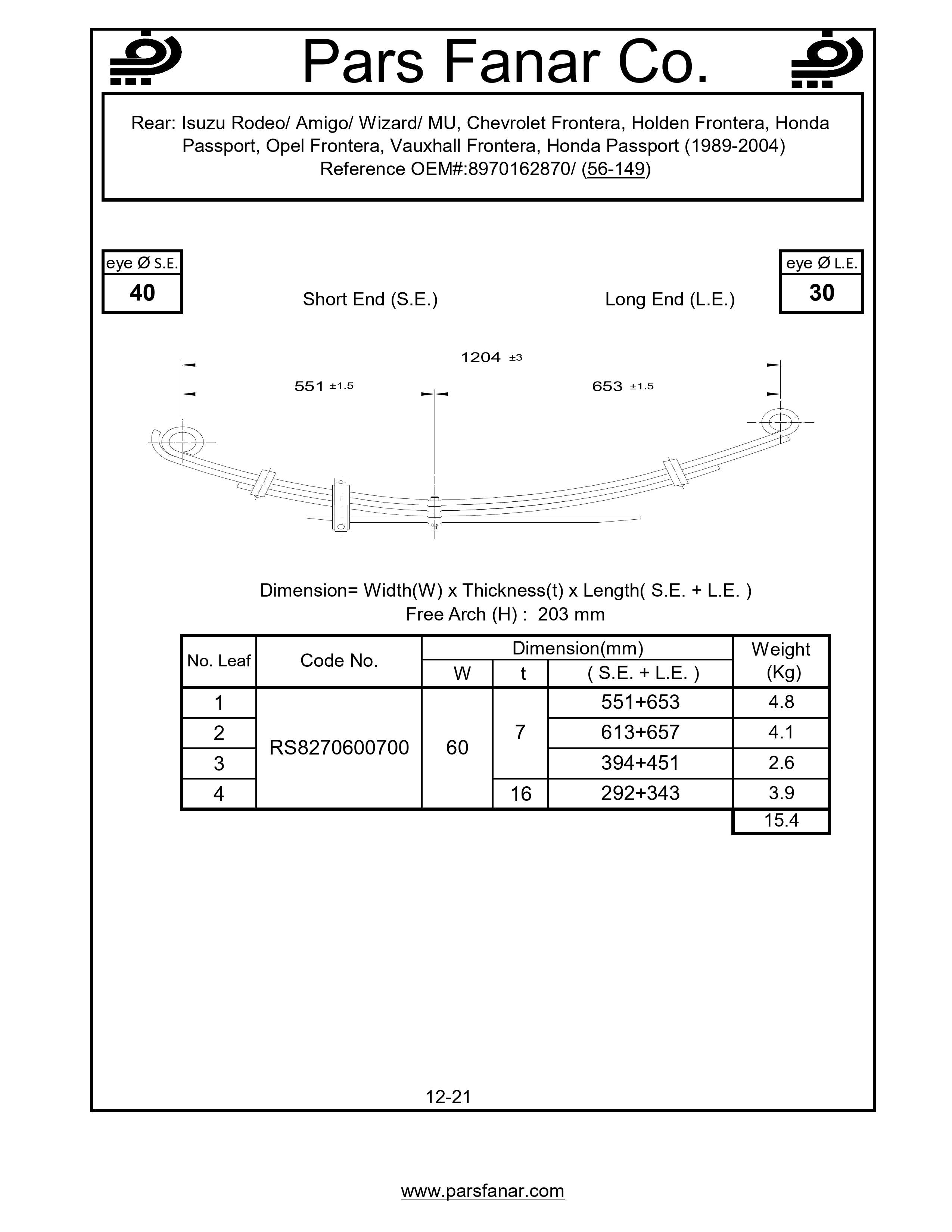 | Name of the vehicle/cabin/trailer | Chevrolet Frontera, Holden Frontera, Honda Passport, Honda Passport (1989-2004), Isuzu Rodeo/ Amigo/ Wizard/ MU, Opel Frontera, Vauxhall Frontera |