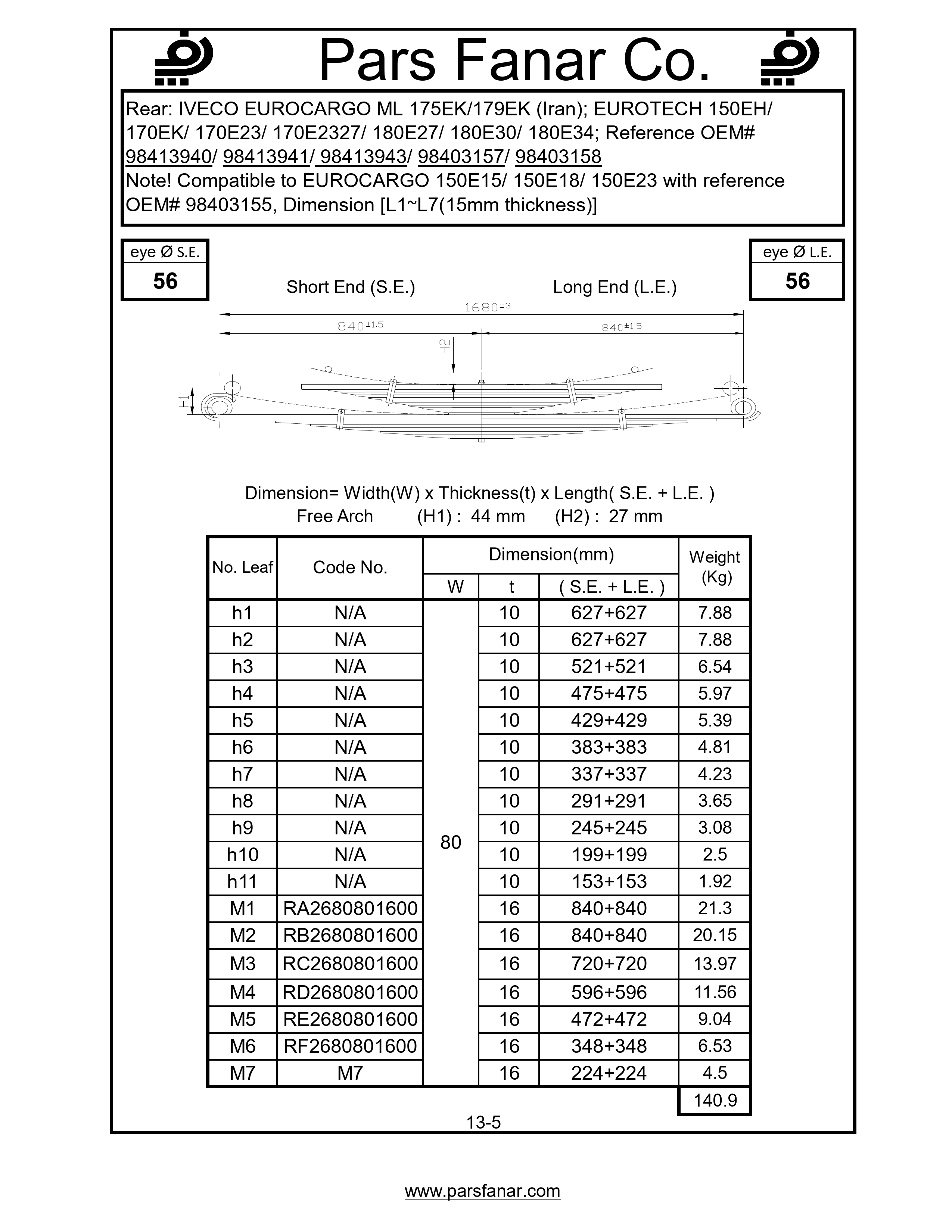 Note: Compatible to EUROCARGO 150E15/ 150E18/ 150E23 with Reference OEM# 98403155, Dimension [L1~L7(15mm thickness)]