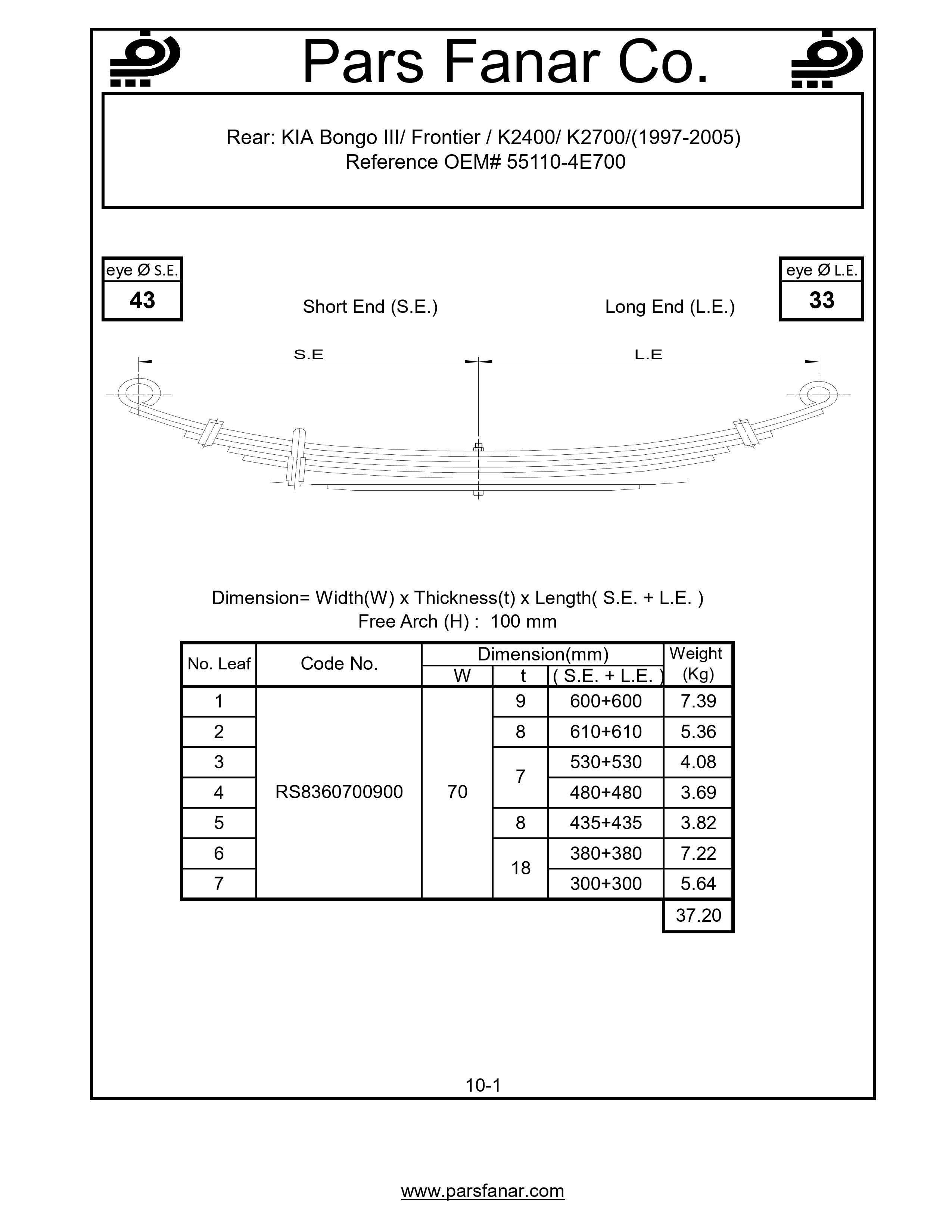 | Free arc (H) flat spring | 100 |