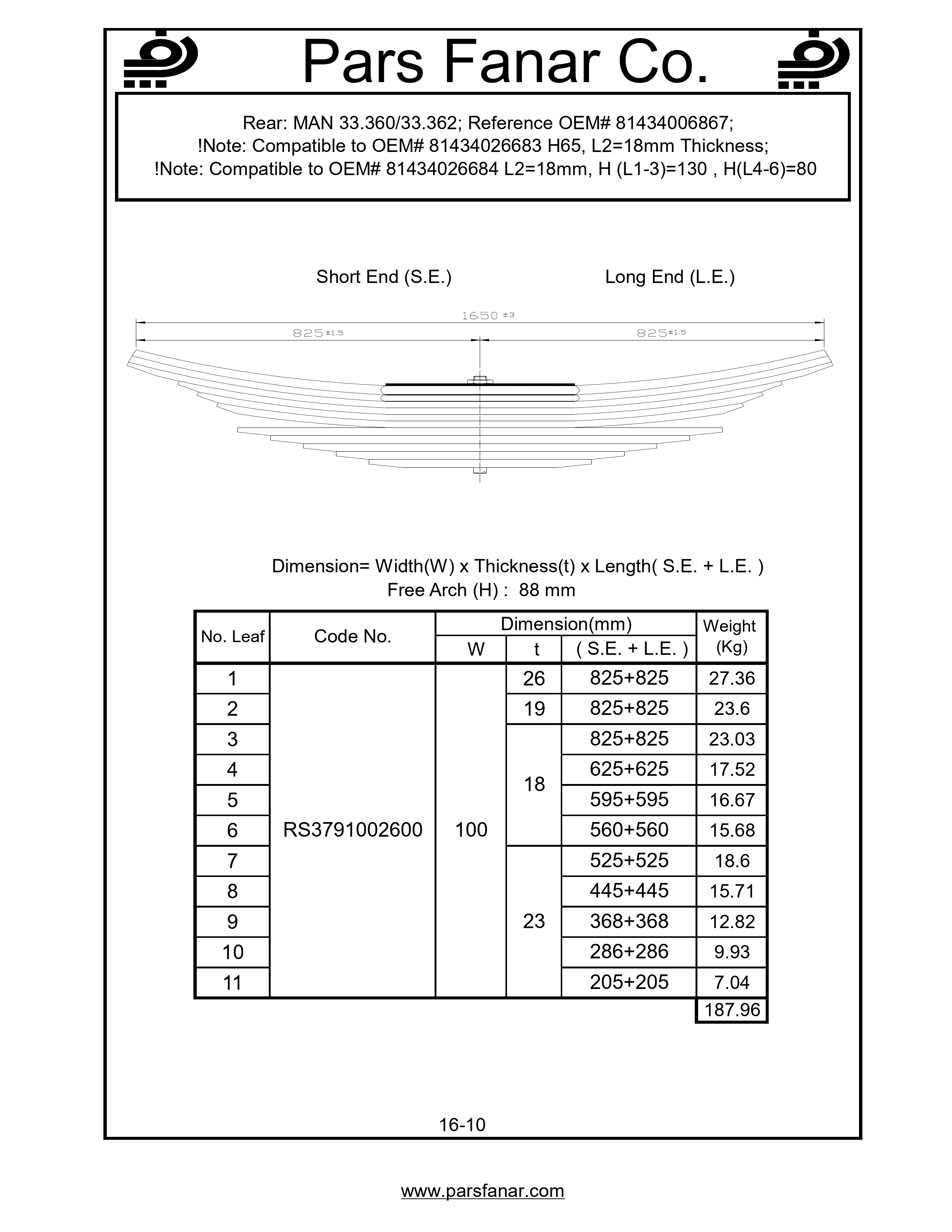 Note: Compatible to OEM# 81434026684 L2=18mm, H (L1-3)=130 , H(L4-6)=80