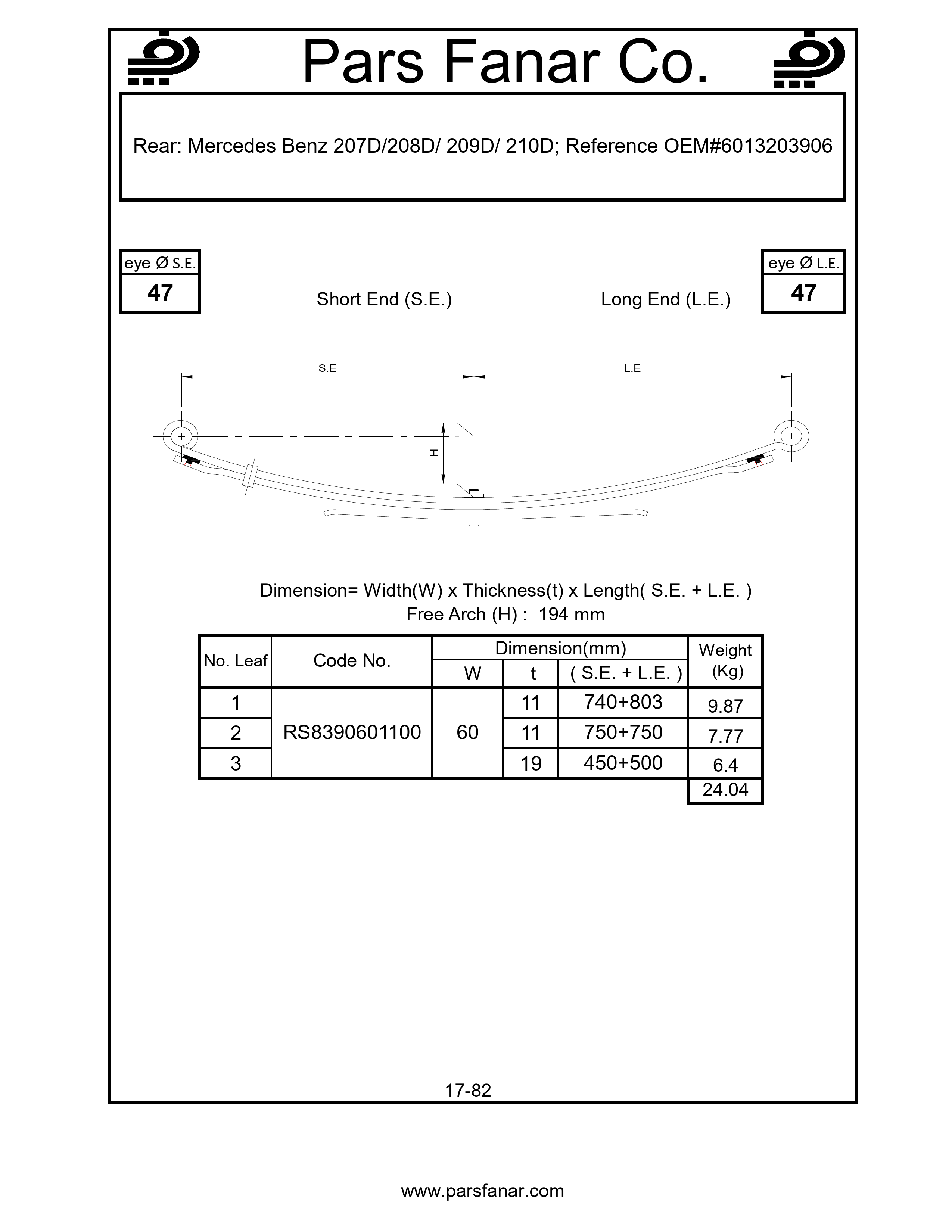 Rear: Mercedes Benz 207D/208D/ 209D/ 210D