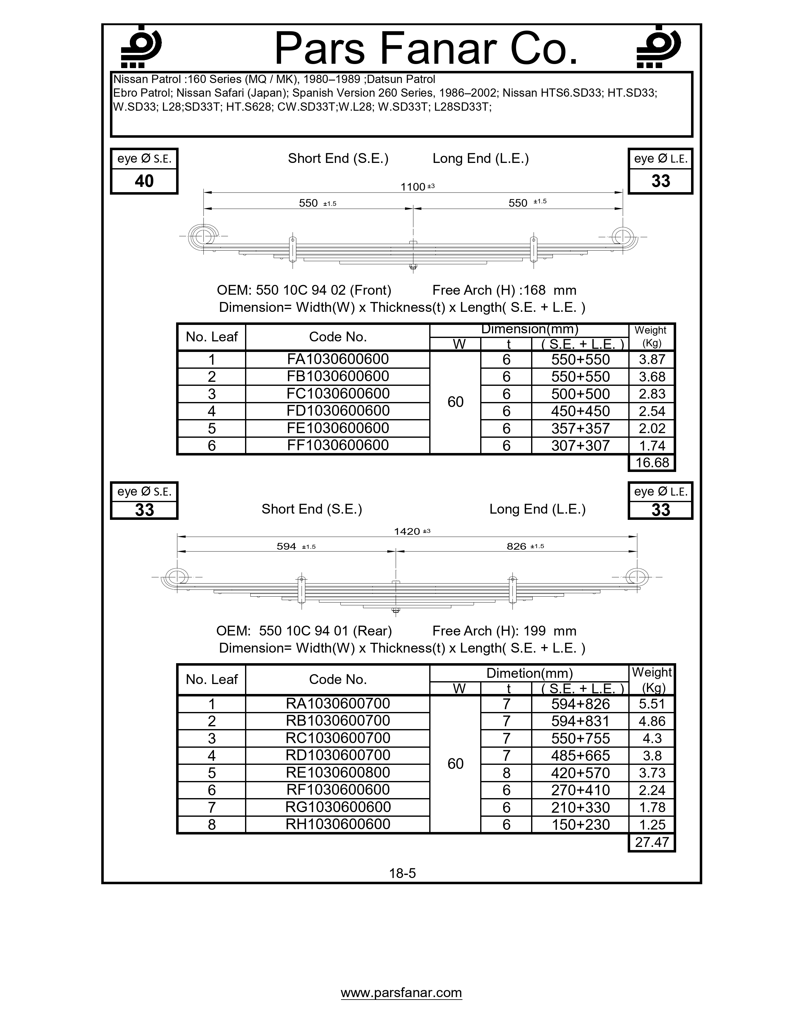 | Name of the vehicle/cabin/trailer | ;Datsun Patrol, 1980–1989, 1986–2002, Nissan Ebro Patrol, Nissan HTS6.SD33; HT.SD33; W.SD33; L28;SD33T; HT.S628; CW.SD33T;W.L28; W.SD33T; L28SD33T, Nissan Patrol :160 Series (MQ / MK), Nissan Patrol Spanish Version 260 Series, Nissan Safari (Japan) |