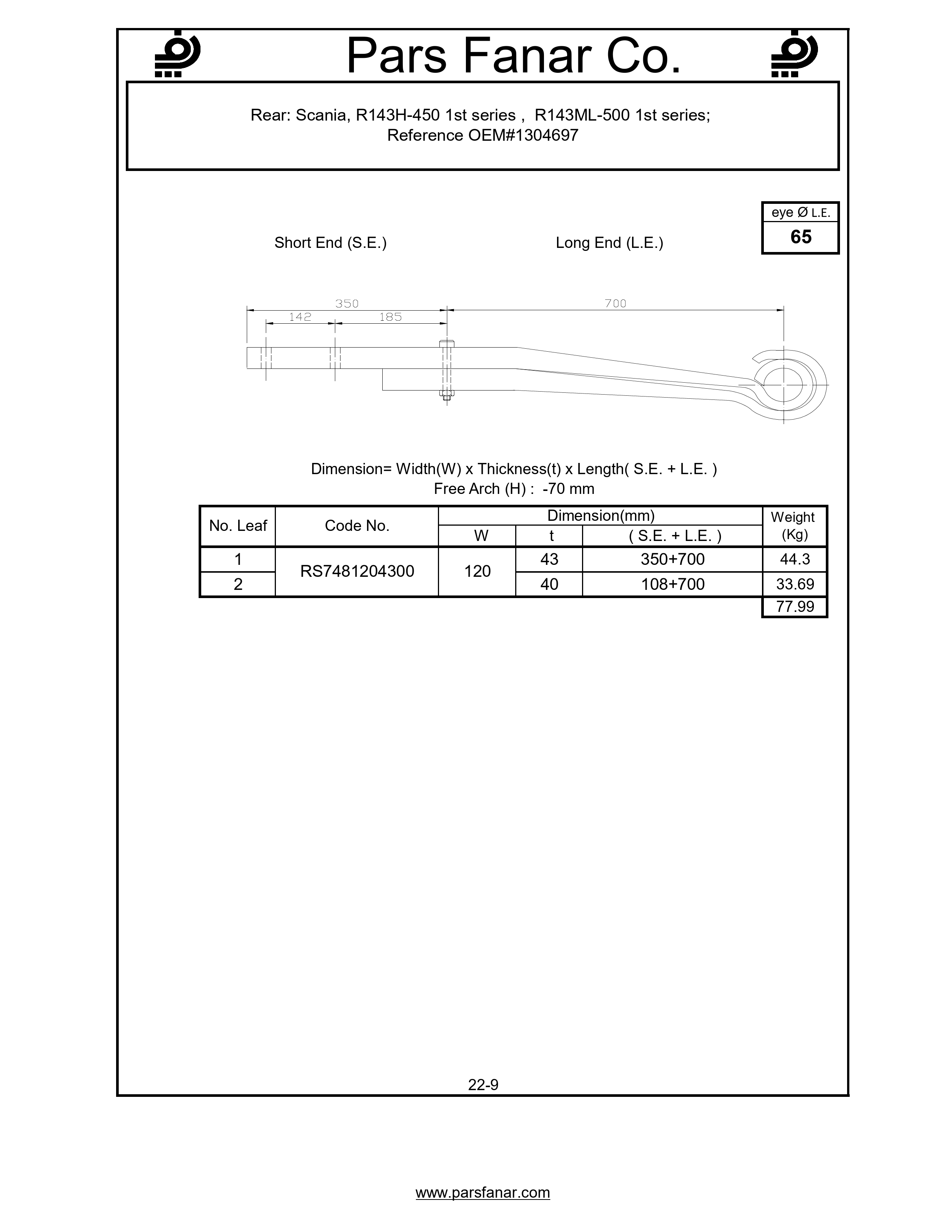 | Free arc (H) flat spring | 70 |