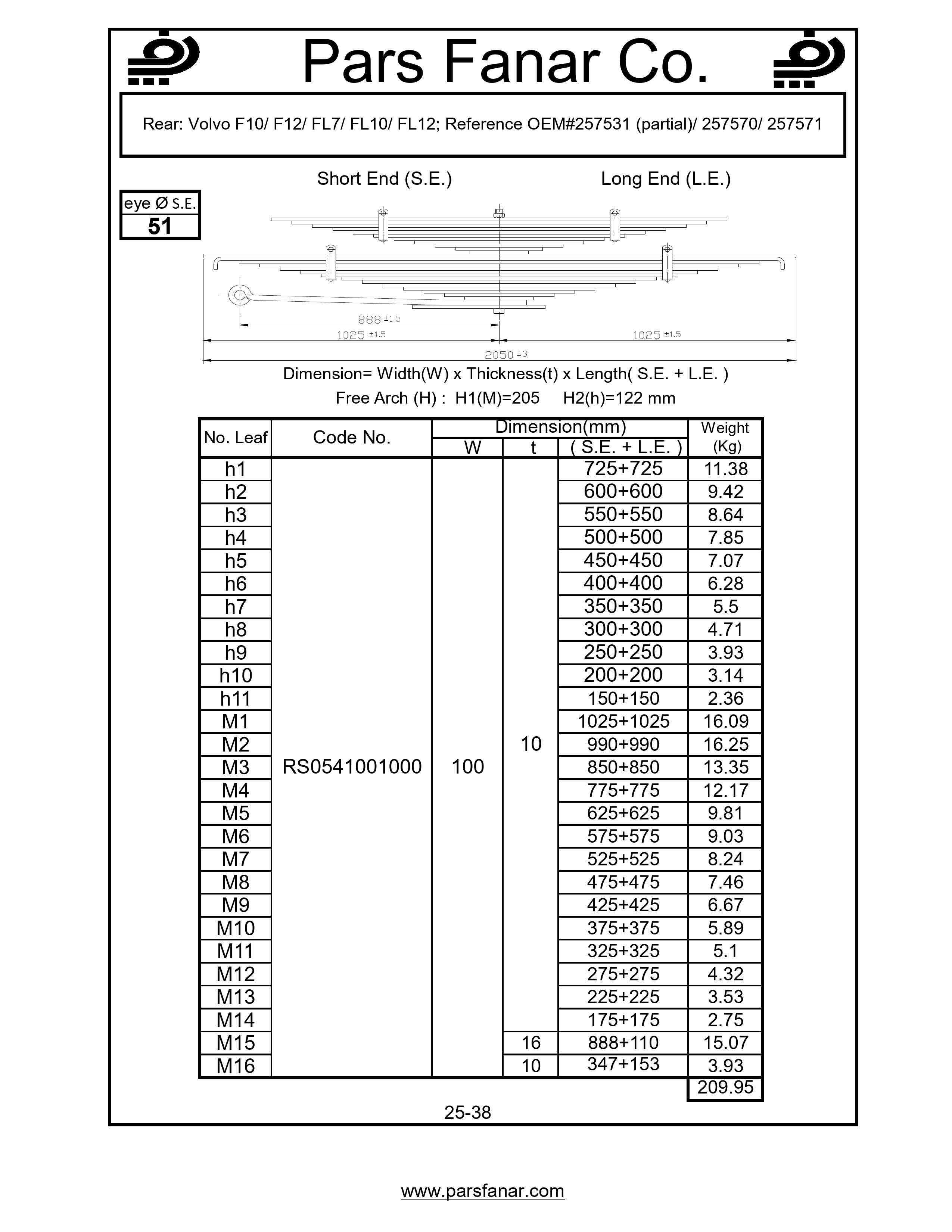 | Free arc (H) flat spring | 205 |
