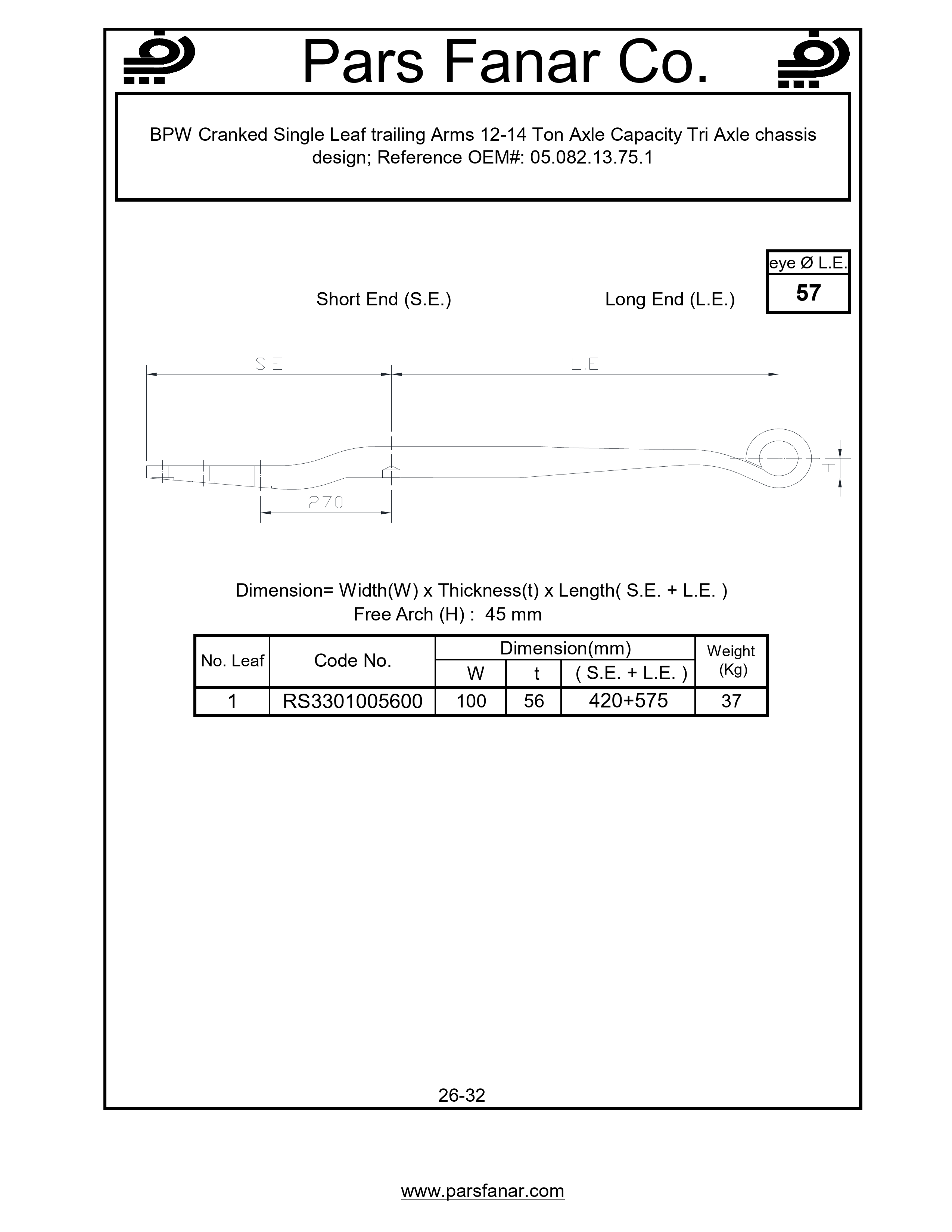 | Name of the vehicle/cabin/trailer | BPW Cranked Single Leaf trailing Arms 12-14 Ton Axle Capacity Tri Axle chassis design |