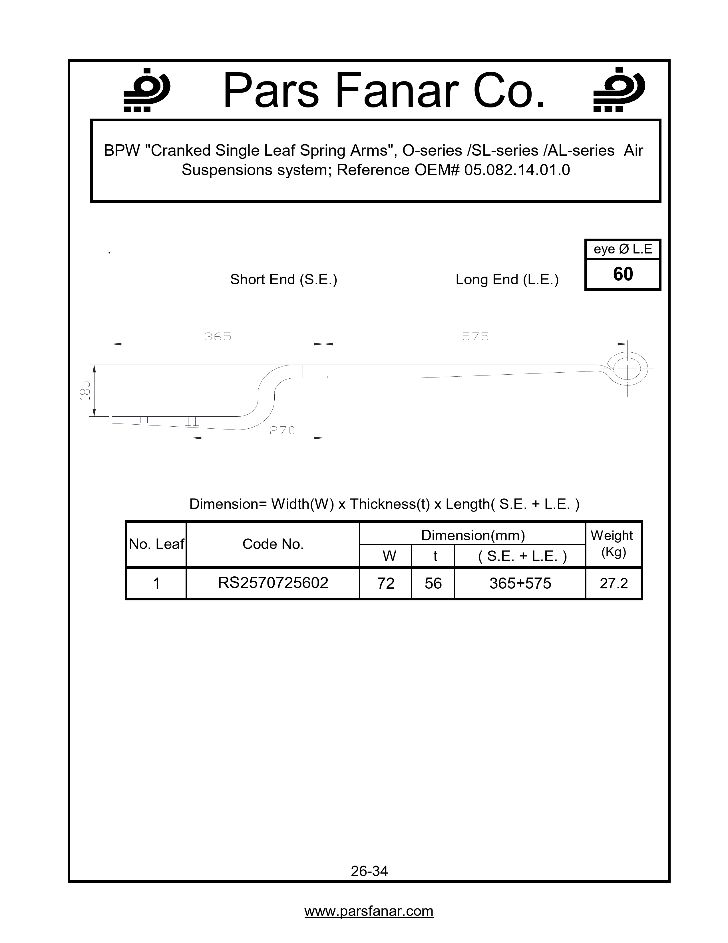 BPW Cranked Single Leaf Spring Arms,O-series /SL-series /AL-series Air Suspensions system