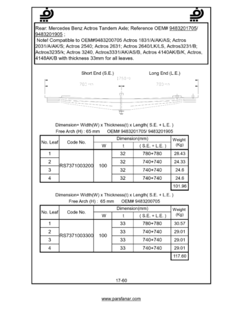 9483200705, 9483201705, 9483201905 :OEM Code